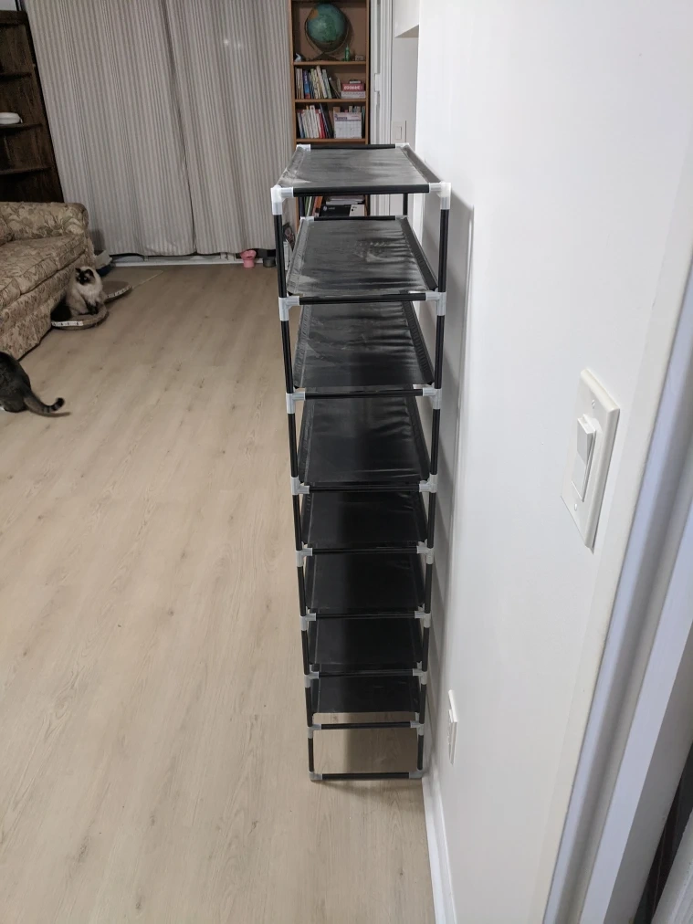 Declutter your entryway or closet with this 8-tier shoe rack! It's perfect for keeping your shoes organized and easily accessible. The rack is lightweight and easy to assemble, making it a great addition to any home. size is 29.5"x11"x55"(height) pick up at 195 Merton Street Toronto or pick up at subway station Davisvill. and I can deliver it to your house but you need to pay me another $3. Thanks.