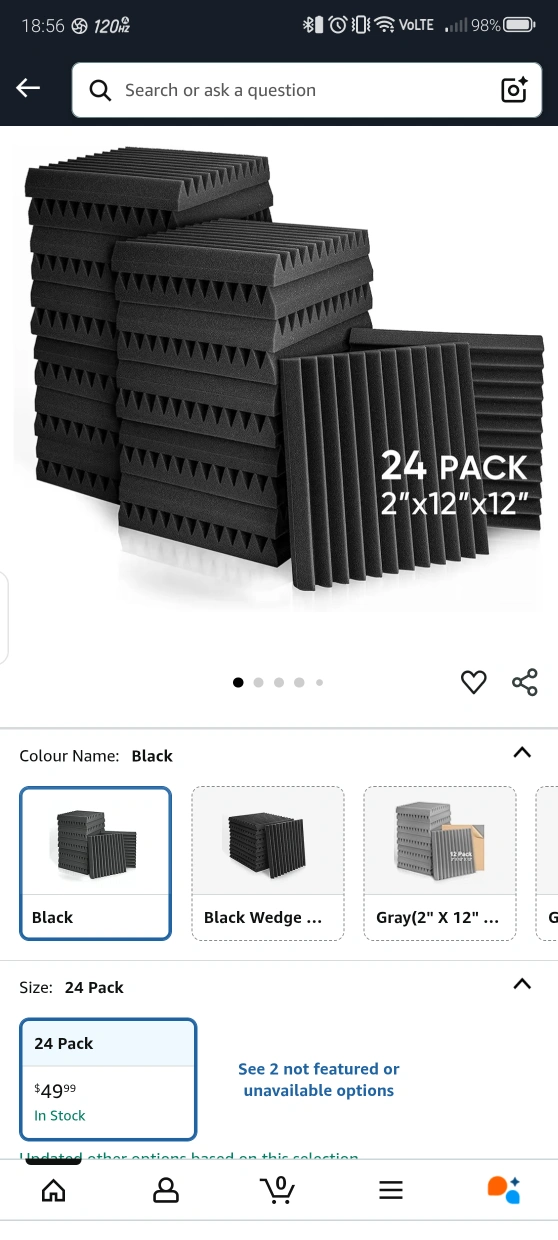 2×20 pack of black acoustic foam panels. Each panel measures 1" x 12" x 12". Great for soundproofing studios or home theaters. good condition.new