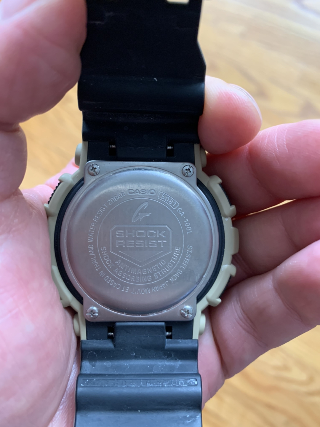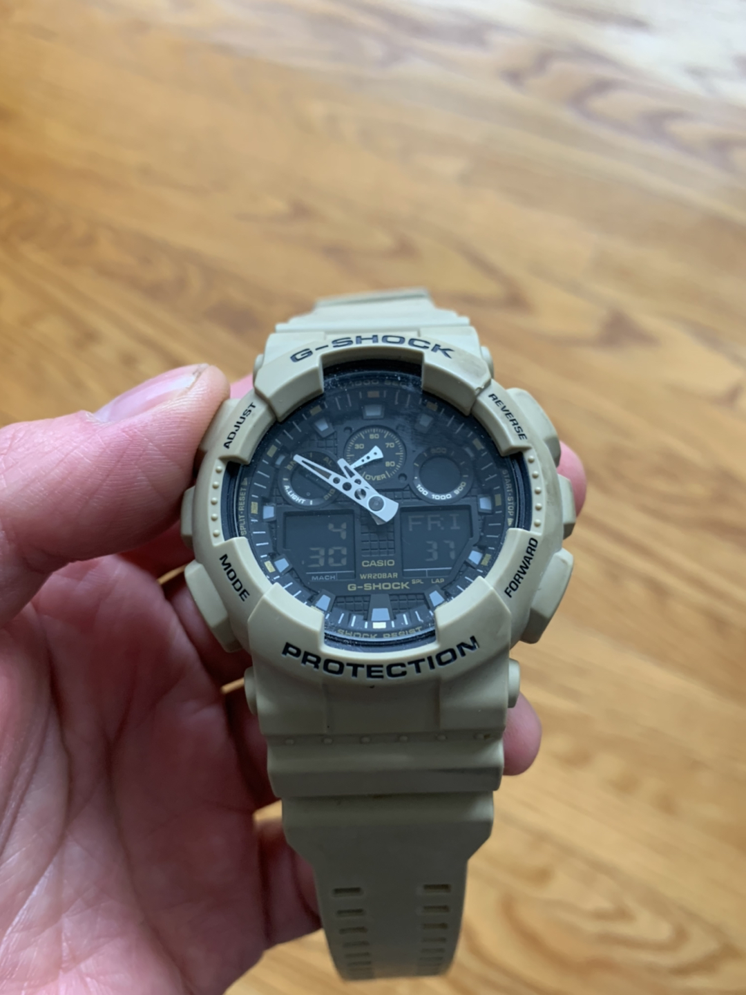 In excellent conditions Casio G-Shock GA 100. See specs below: https://gshock.ca/products/gs-ga100-1a1