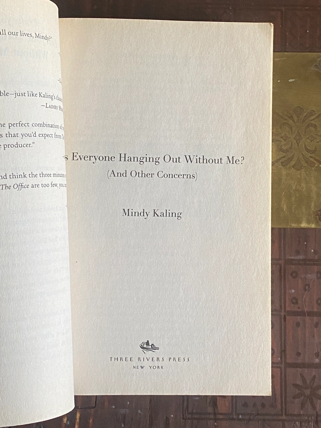 Mindy Kaling *Book* “Is Everyone Hanging Out With Me? (And Other Concerns)” Good Condition, Slight Water Damage on Back Cover.