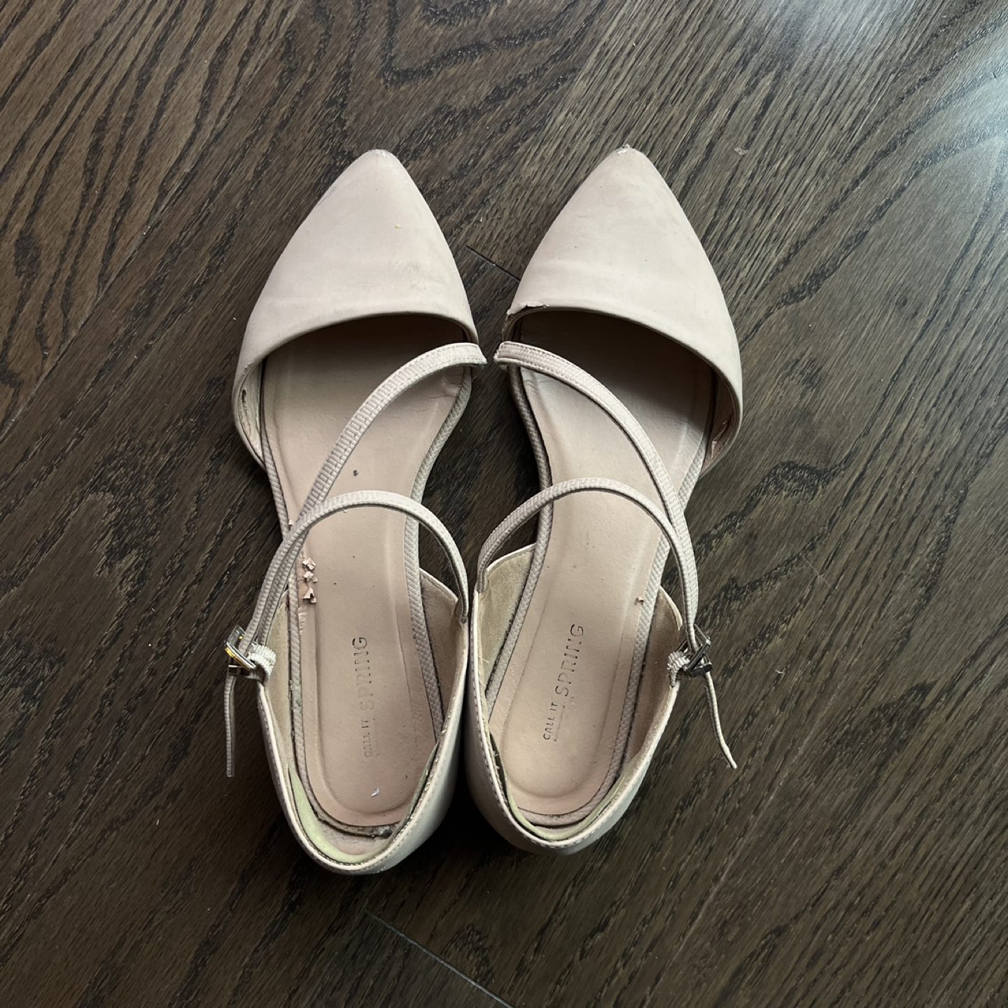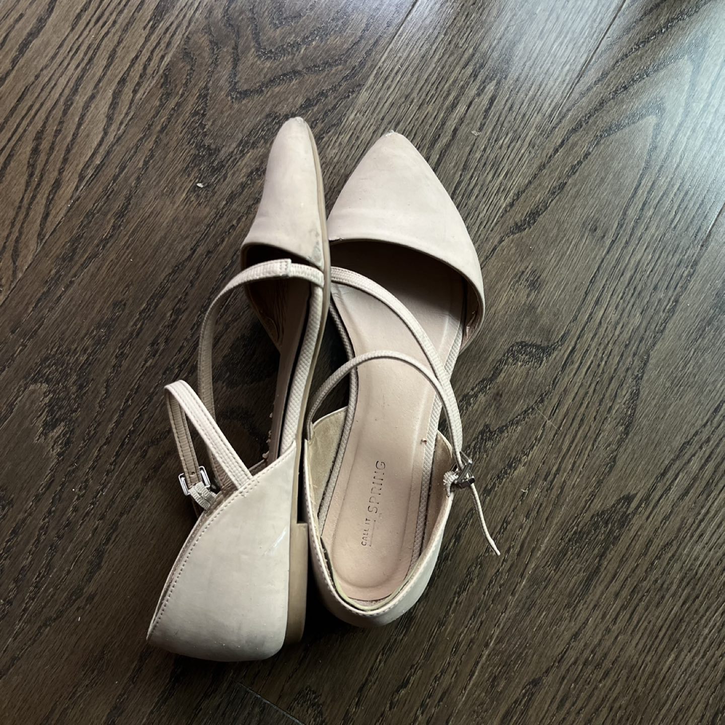 A worn pair of flats, which is still wearable! ❤️has blister protection patch in the back of the shoe inside, which made it comfortable ❤️office or feminine style, casual or formal ❤️vegan ❤️the color that is suitable with mostly everything