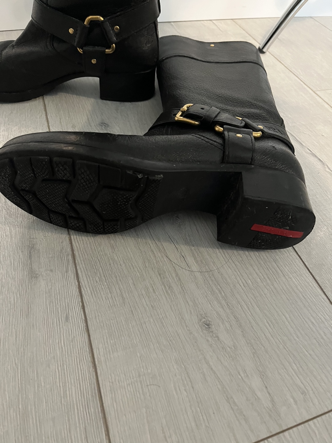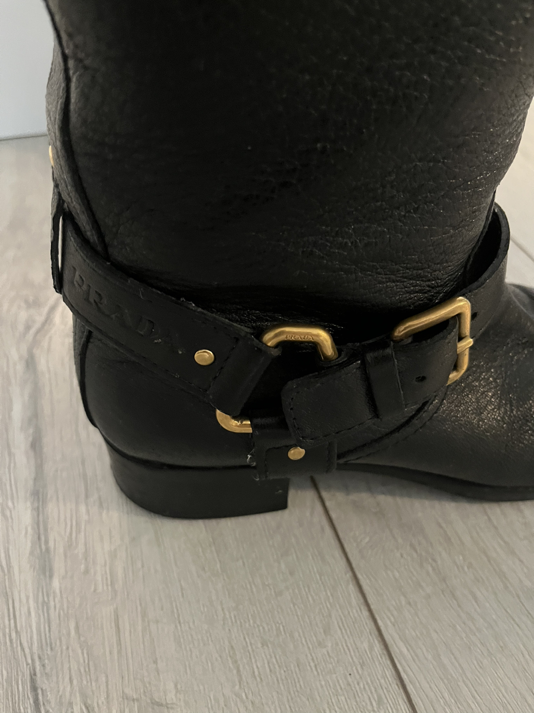 Authentic PRADA LEATHER PEBBLED MOTO BOOTS. SUPER SOFT SIZE 7.5 Mid length