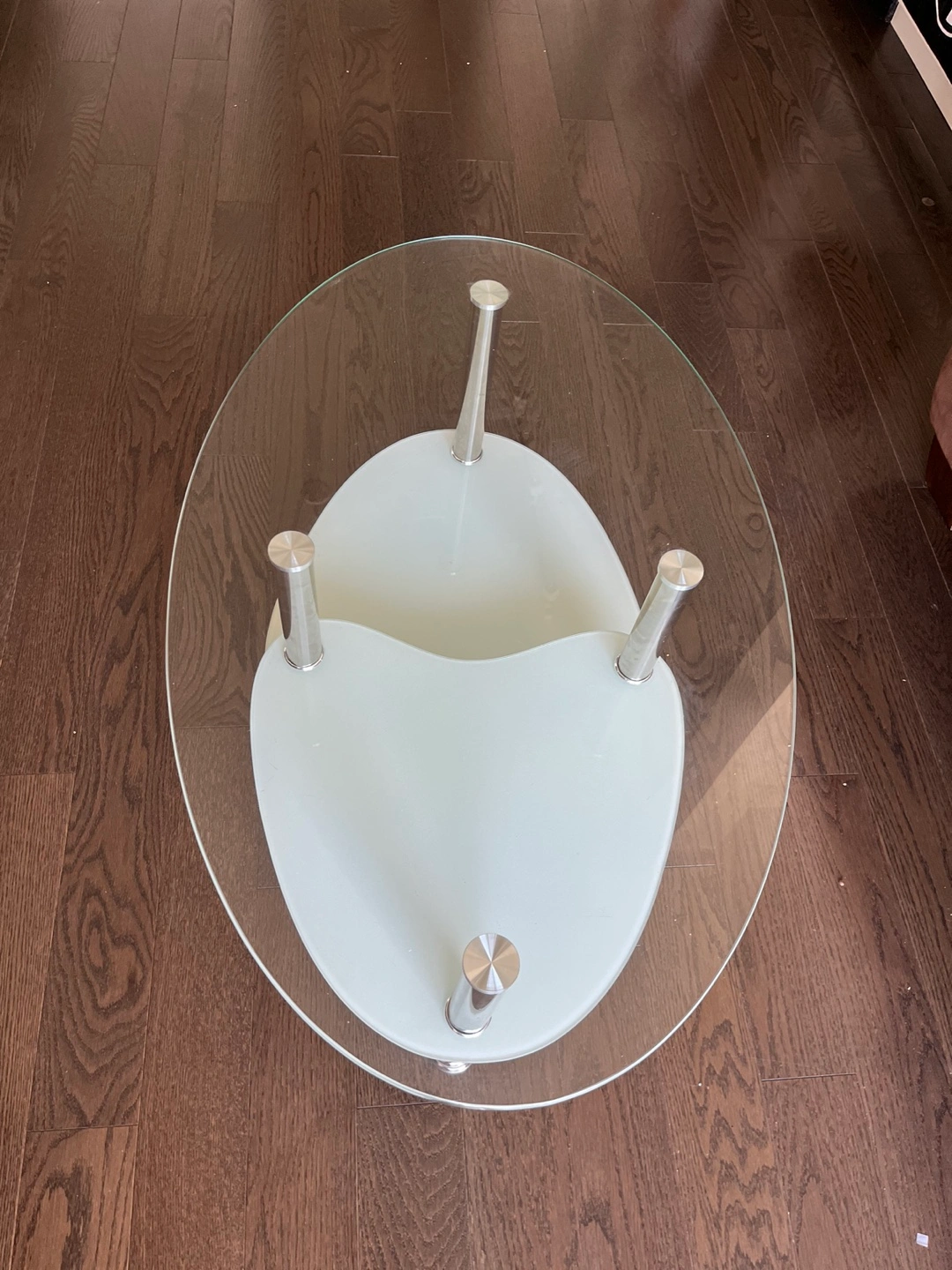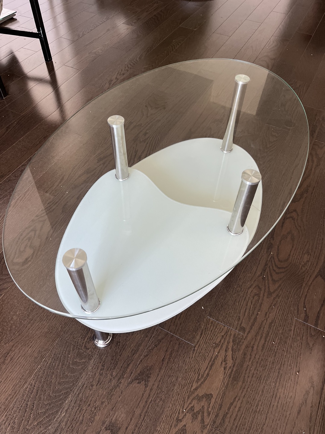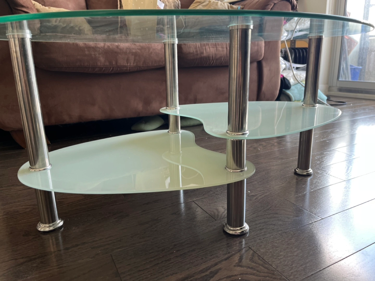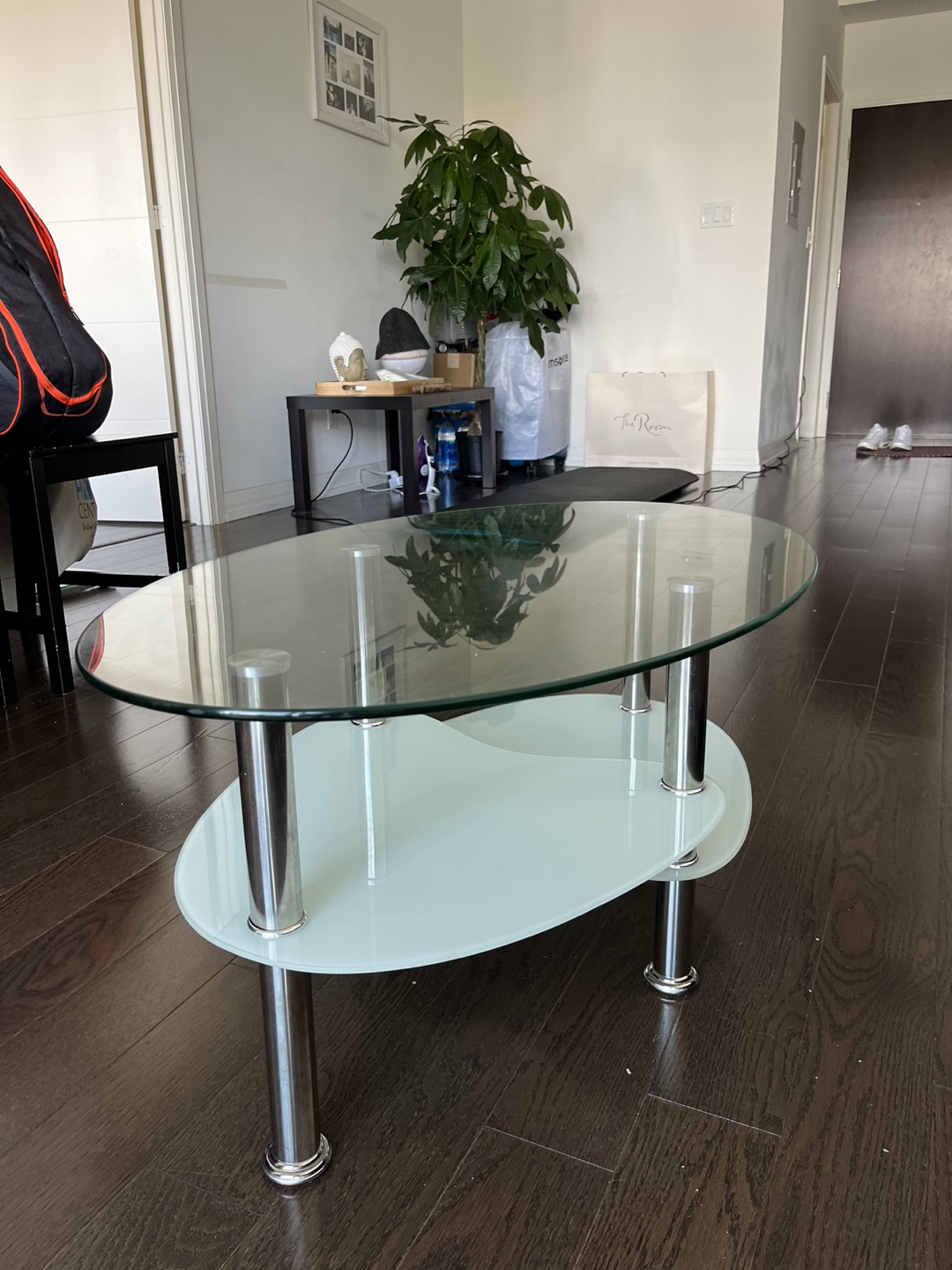 Coffee table with no damages that will suit any place and furniture❤️ Has three levels, 4 legs, very comfortable for storing things or surging snacks Moving sale, HURRY🤗