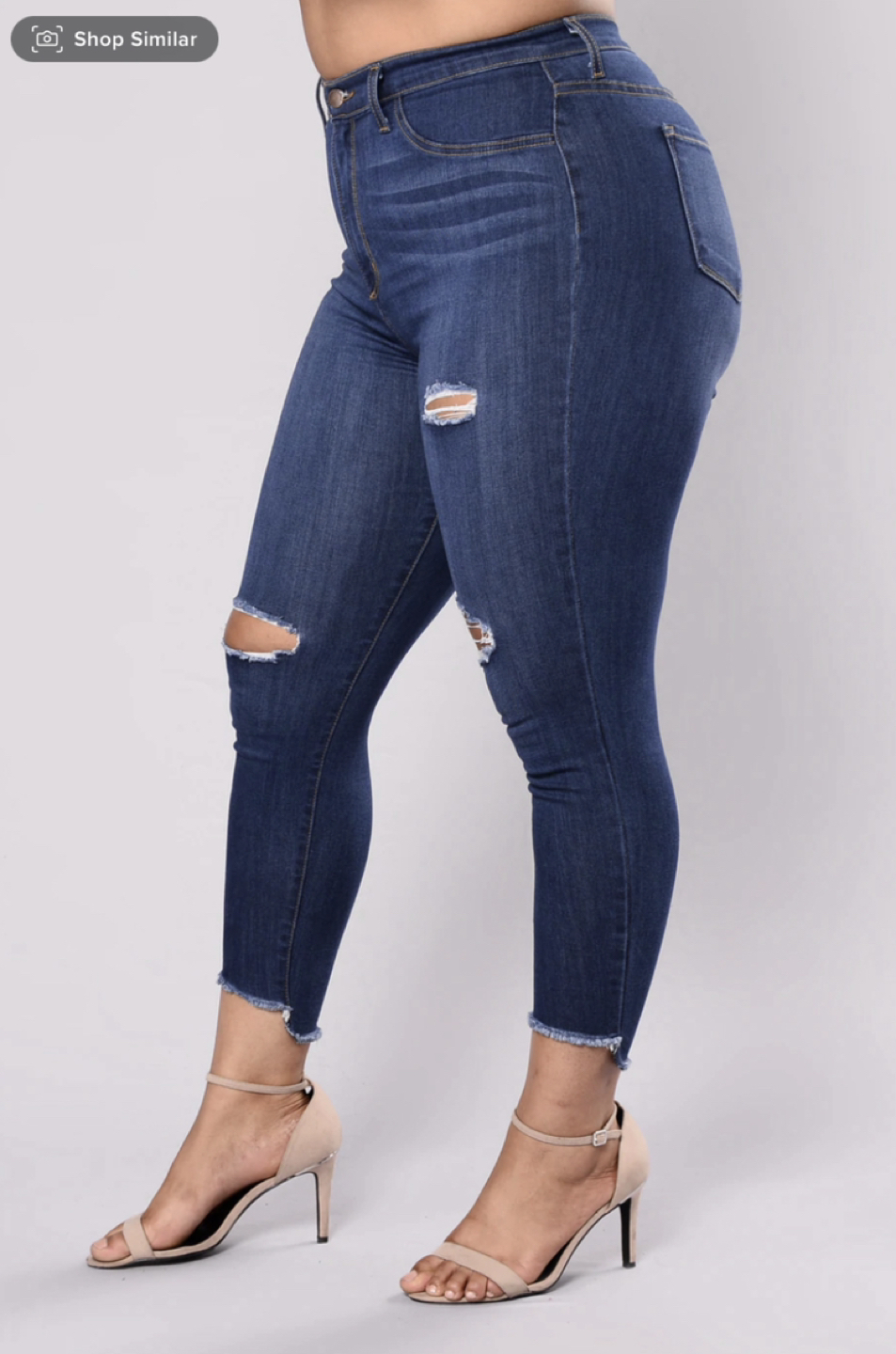 [Lightly Worn; Perfect Condition] Medium Blue Distressed Jeans ✨High Rise ✨Full Stretch ✨Skinny Jeans ✨2 Pockets ✨Whisker Front ✨Distressed Front Detail ✨26 Inch Inseam ✨50% Cotton 30% Rayon 10% Polyester 8%% T400 2% Spandex