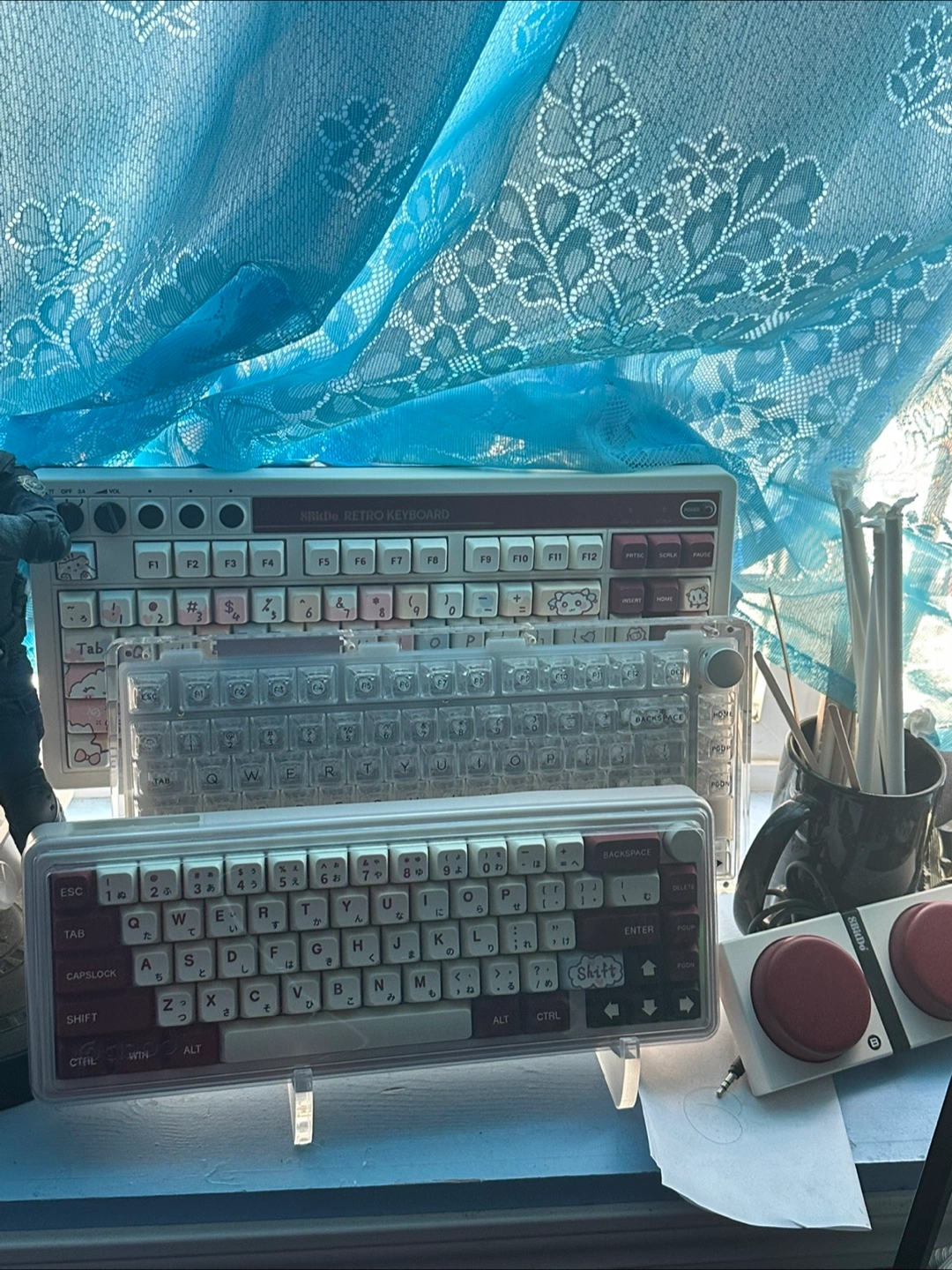 Everything is in great condition, but Kiboom phantom has an stretch on too side (which's invisible for you, when u display on desk). Nebula and 8bitdo one has their keycaps switched, and I'm super lazy to switch up again so I'll sell it for discounted if you buy as a combo. I'm selling those in really cheap prices because I'm moving out! Selling for only Fri, Sat. Accept only e-transfer! Kiboom phantom 81 V2: $60 8bitdo retro keyboard: $40 Cidoo nebula pink : $30 8bit&nebula together : $55 All together: $110