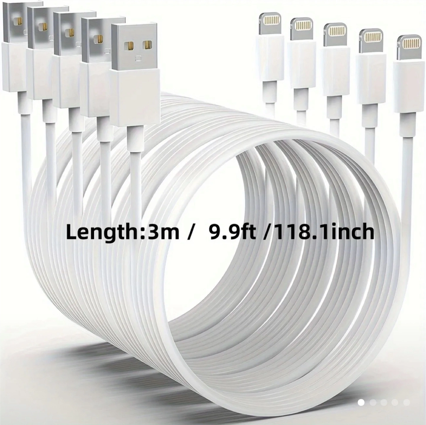 Brand new, price firm. Selling a 9.9 feet (3m) long white USB charging cable. It measures approximately 9.9ft / 118.1 inches in length.