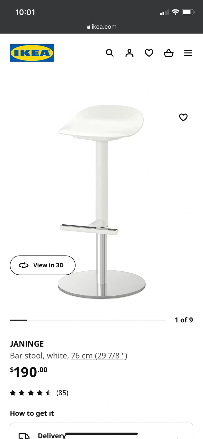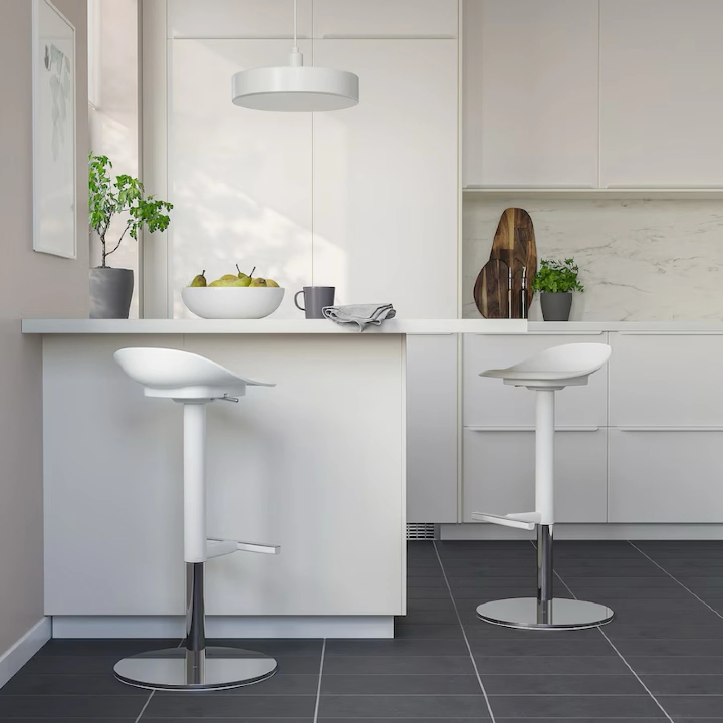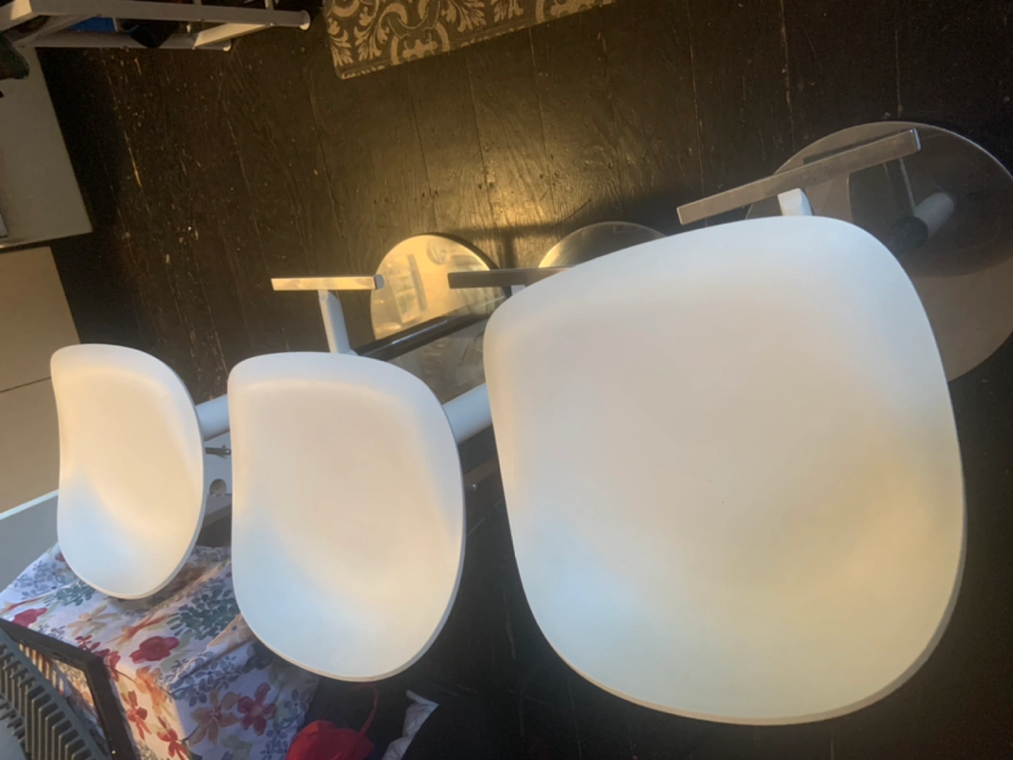 Three IKEA bar stools, white and metallic base, very chic and comfortable, adjustable height. Gently used, great condition no issues and work great. Just don’t suit my new space. Can deliver for a small extra fee, or you can pick up. $130 each, $350 for all three Each stool retails for $190 plus tax. Open to reasonable offers ☺️