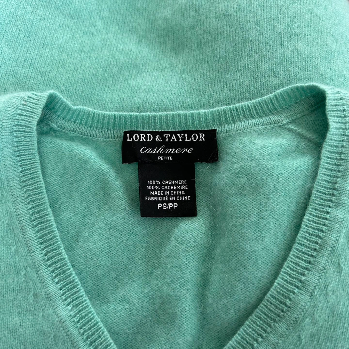 Mint green cashmere sweater by Lord & Taylor. Listed as size PS, but would best fit a petite XS for a regular fit. In excellent condition with no flaws. No pilling. Offers welcome! Further discounts given if bundling multiple items. Pickup at Burnhamthorpe and East Mall.
