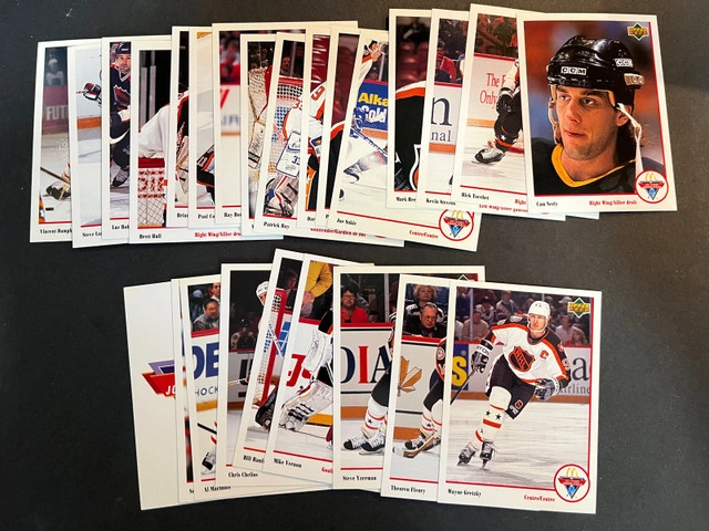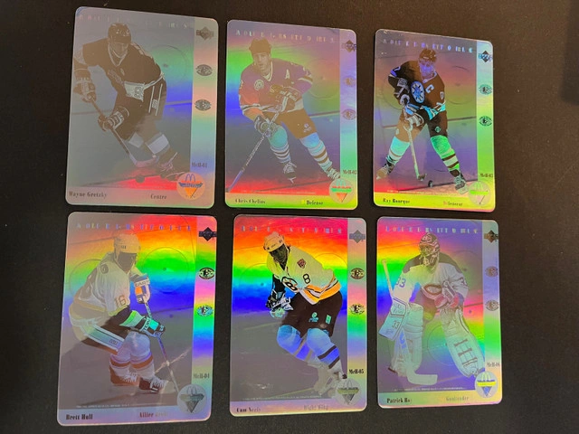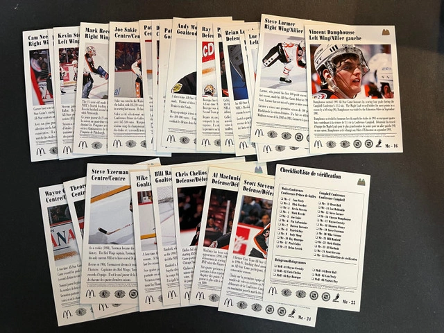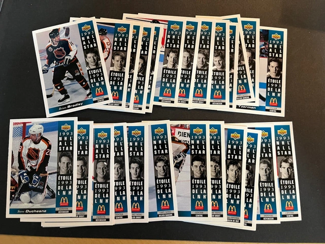 FOR SALE ONLY Early 90’s McDonald’s Hockey cards - complete sets 1991-92 UD All-Stars (25) and Holograms (6) - $25 1993-94 UD NHL All-Stars (27) x2 - $15 /each 1995-96 Pinnacle (41) - $20. Condition: Used - Like new. More Info: Sports Collectibles. Cashless payment accepted. Cash accepted.