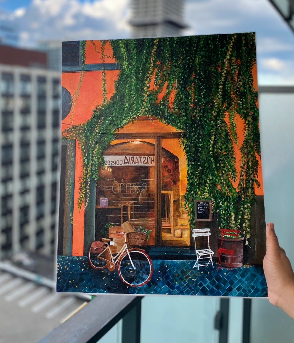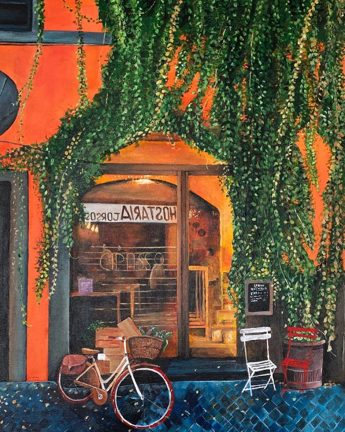 Beautiful painting of Allure of Rome (acrylics on Canvas) Varnish coating to protect from dust!