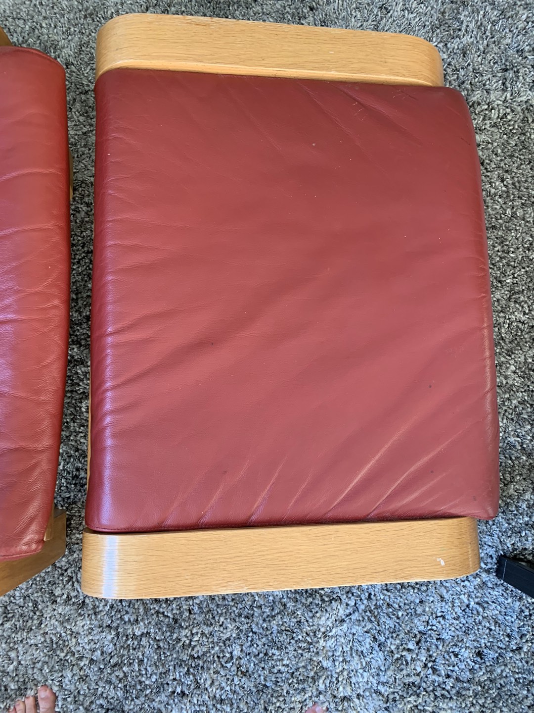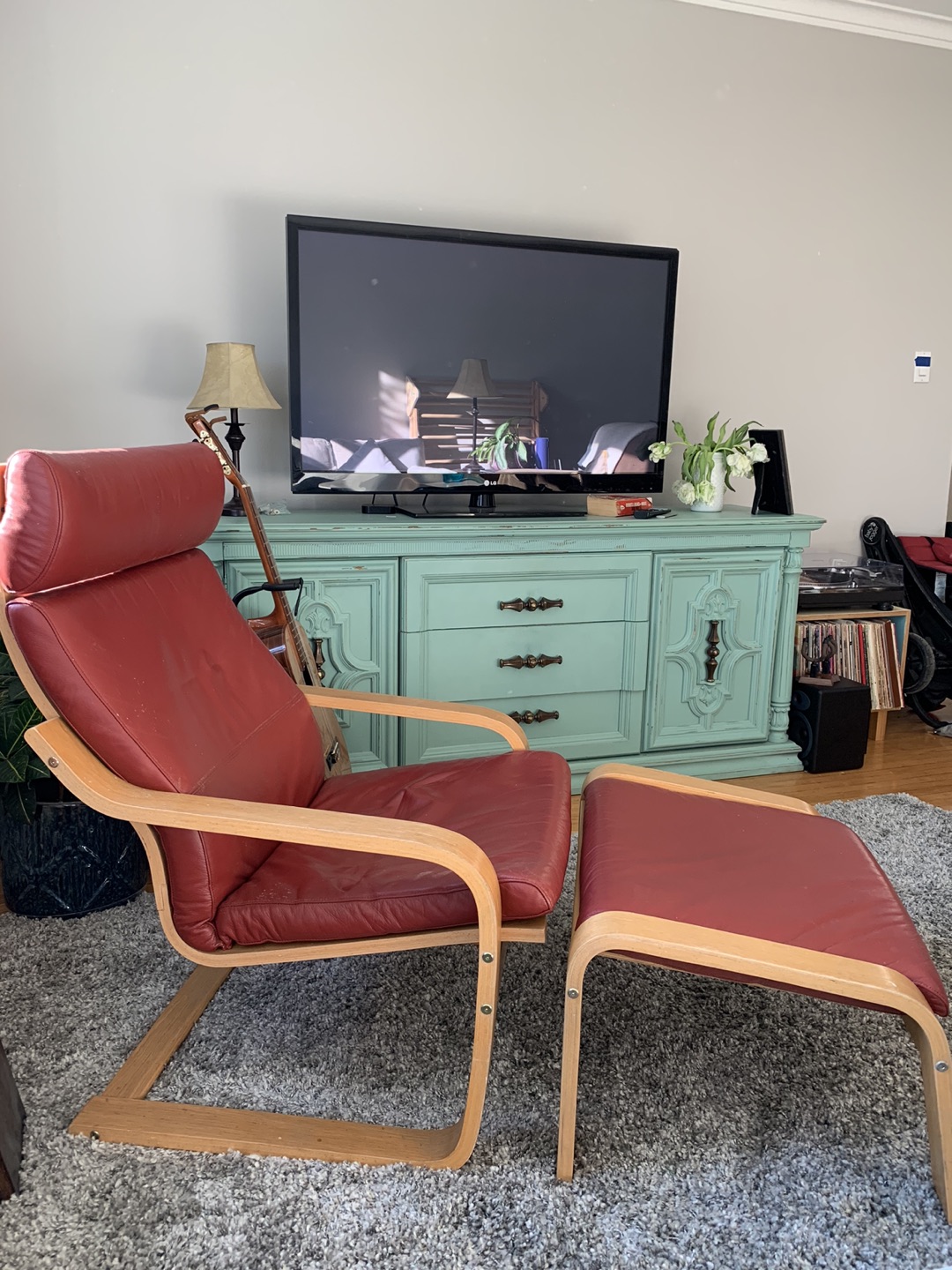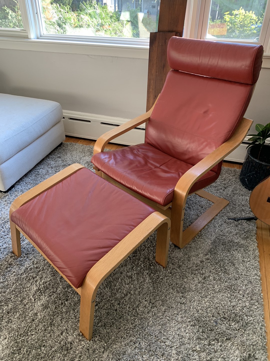Red leather and light pine ikea poang chair and ottoman. Go for $200 and $150 new respectively. Prefer pick up but can deliver if you are quite close to me (Dundas st west and bloor). In pretty good shape, could just use a wipe down as a bit dusty. Easy to clean leather! $80 OBO
