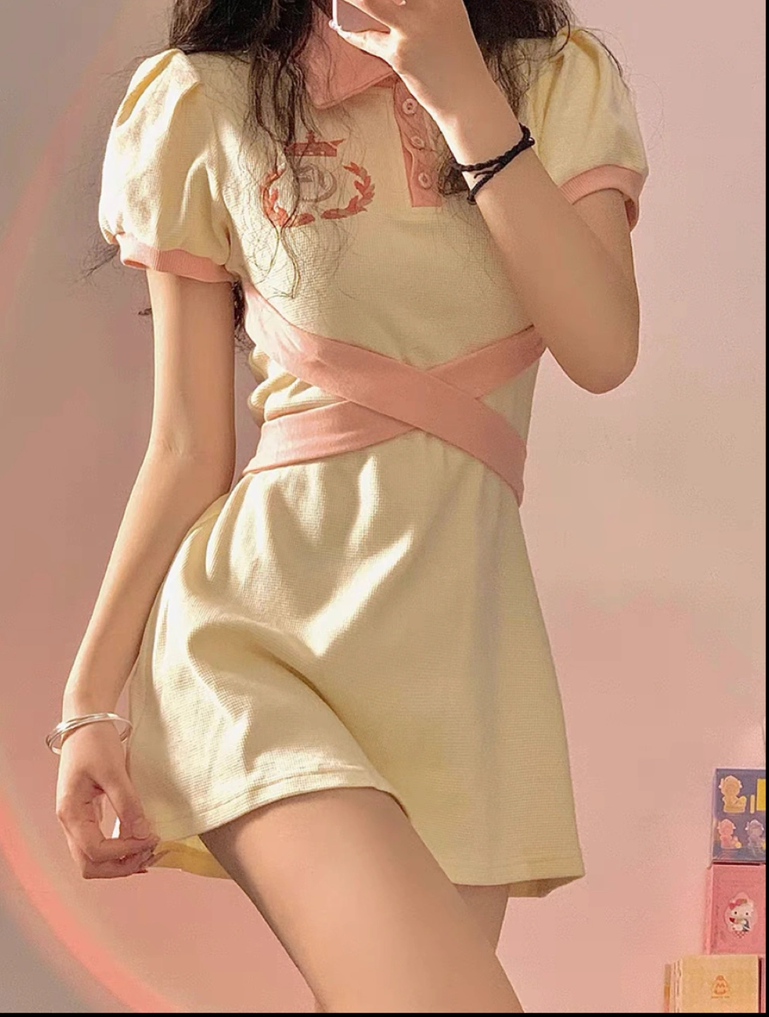 brand new never worn schoolgirl style dress cream white colour pink straps can be styled in many ways!