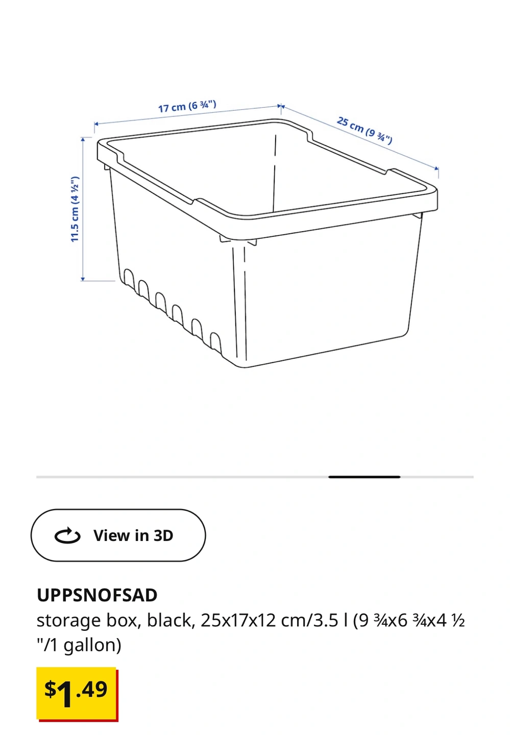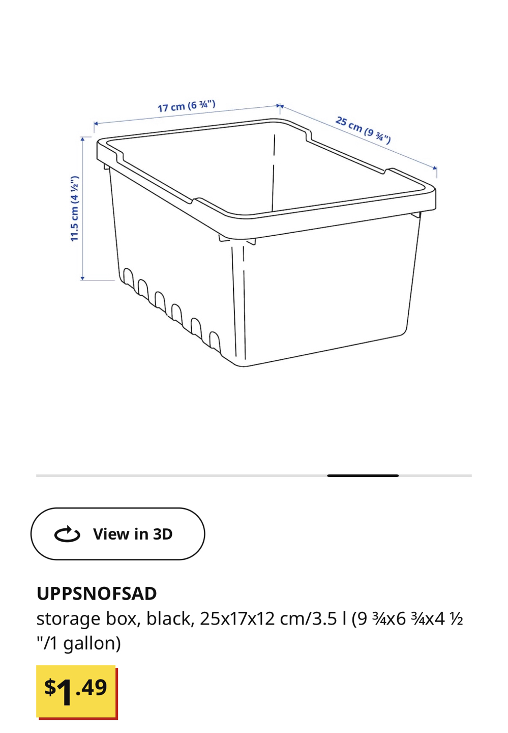 ๐จ (PICKUP ONLY) ๐จ This is a set of 2 black small storage boxes by IKEA. They are small yet functional to store small items such as folded hand towels, small tools, small toys and more. Keep your shelf or under bed or under sink organized with these boxes. There is no lids for these items. They are both well-used but without any visible damage. Retail price: $1.49 (each) 25 x 17 x 12cm ๐ฆ AVAILABLE PICKUP DAY NOTICE: > Wednesday August 23 (5am to 9am) > Thursday August 24 (9am to 6pm) > Friday August 25 (5am to 8am) > Sunday August 27 (8pm to 11:30pm) ๐ฆ