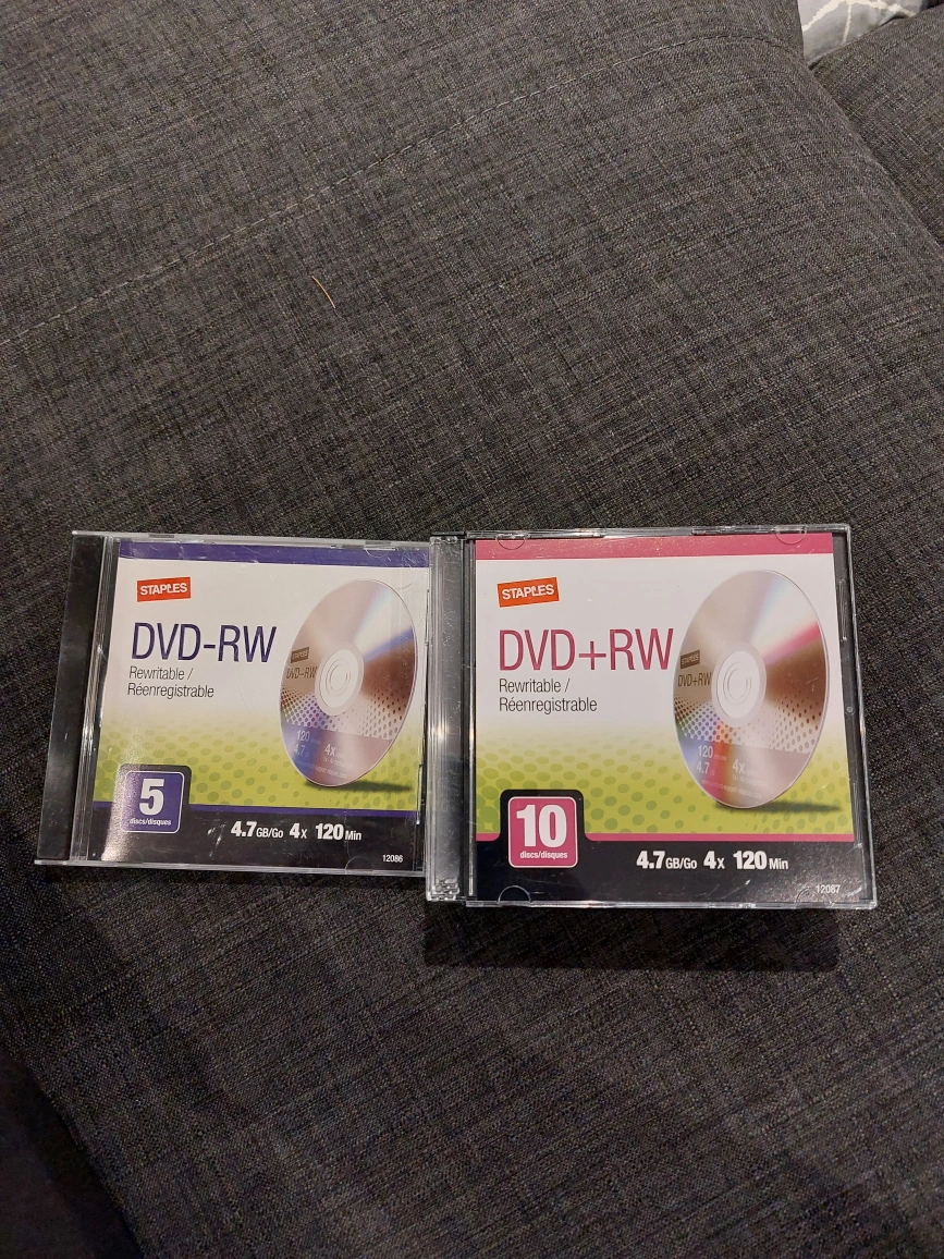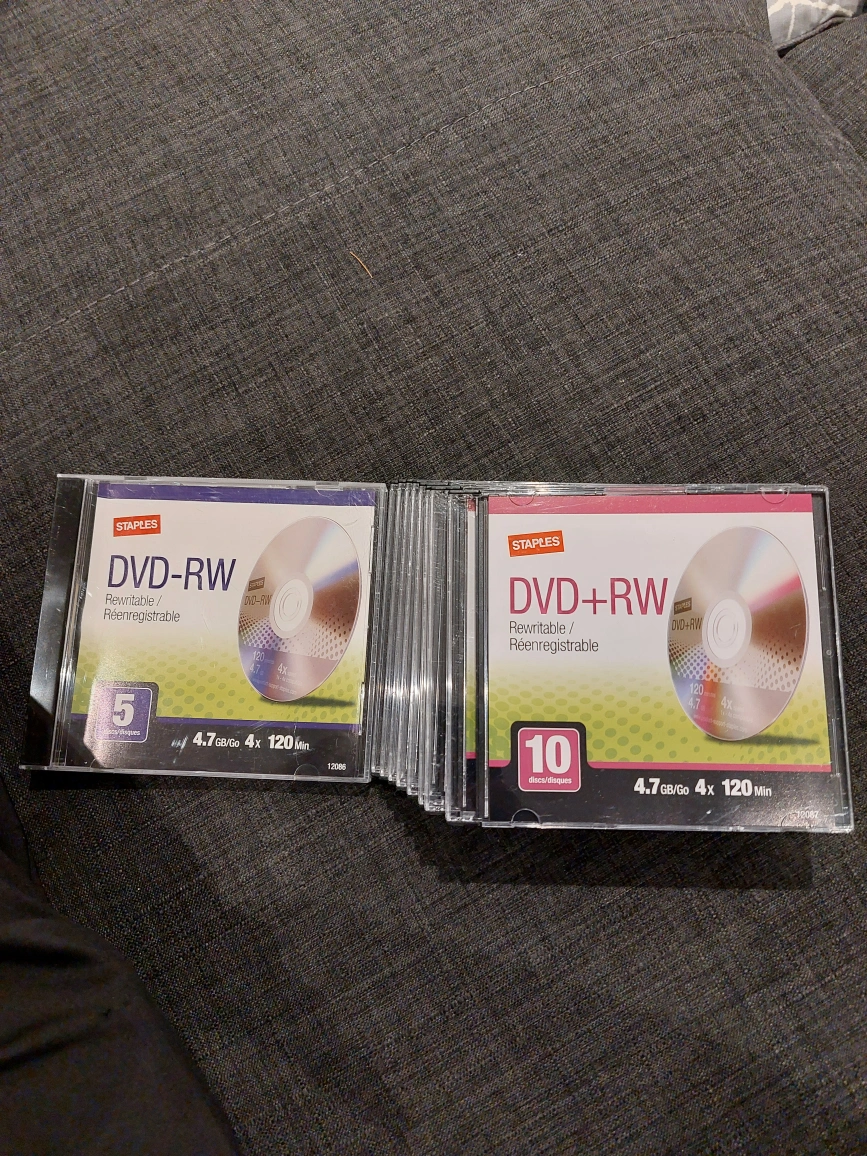 Staples DVD + RW All are 4.7 GB 4x 120min