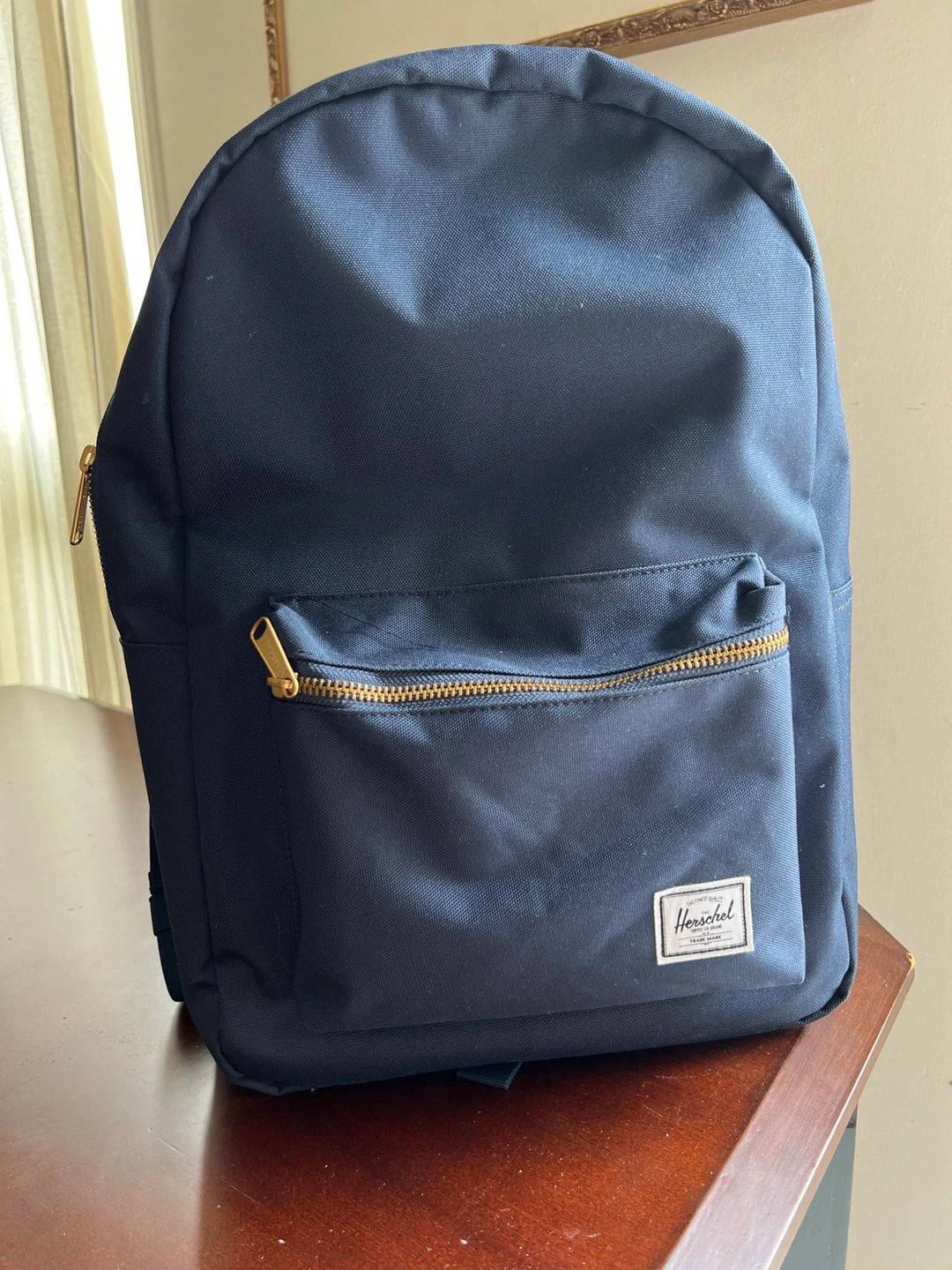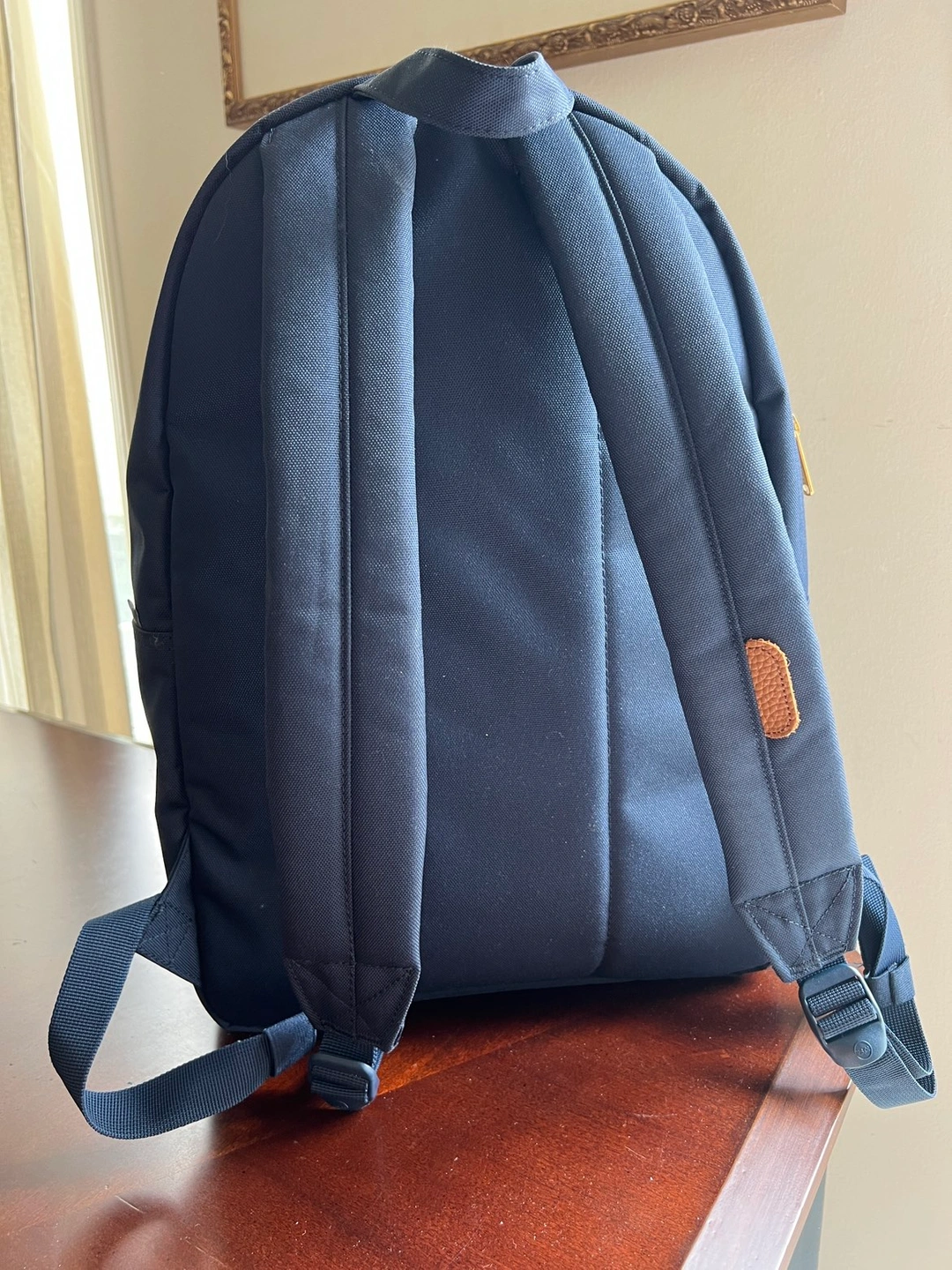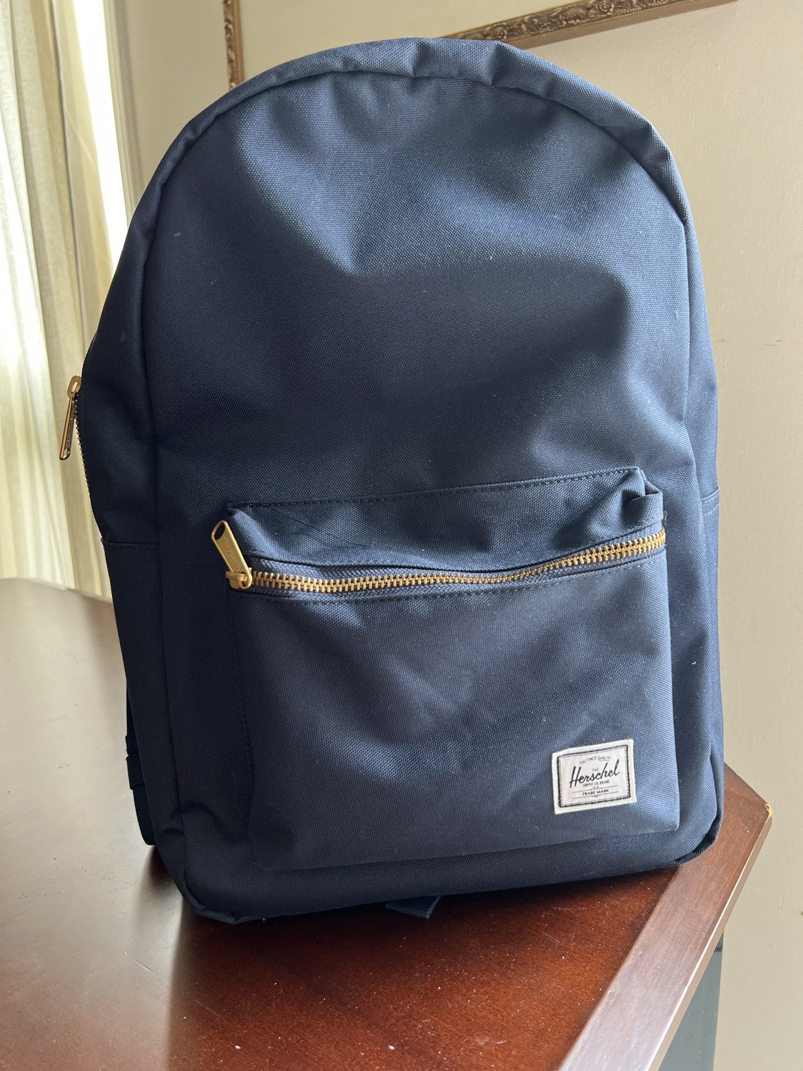 3 month old Herschel backpack never used. Fits a 16” Mac Book Pro. Navy blue. No imperfections, stains, rips. Zippers work perfectly. I just use my tote bag more and don’t need this. Paid $90 for this.