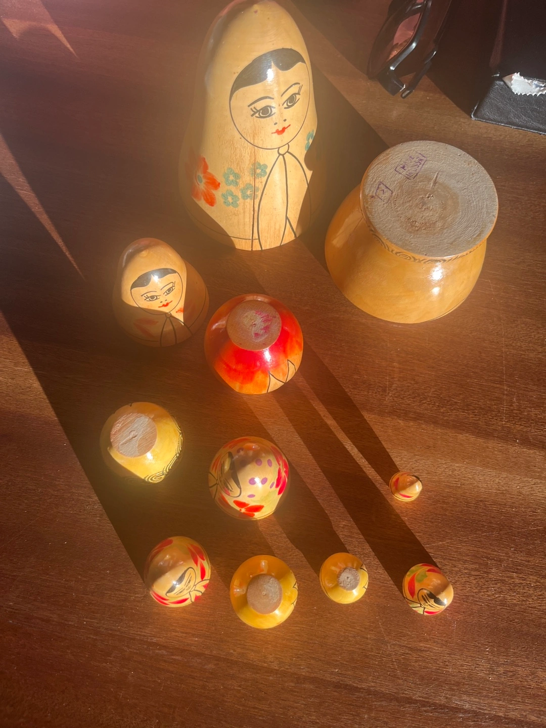 $100. Each- reduced from $250 Collectors item 7 unique wooden nesting dolls Purchased in Russia in the 80’s Great for collectors- I see some crazy prices on Etsy 😳for similar dolls PICK UP BATHURST LAKESHORE