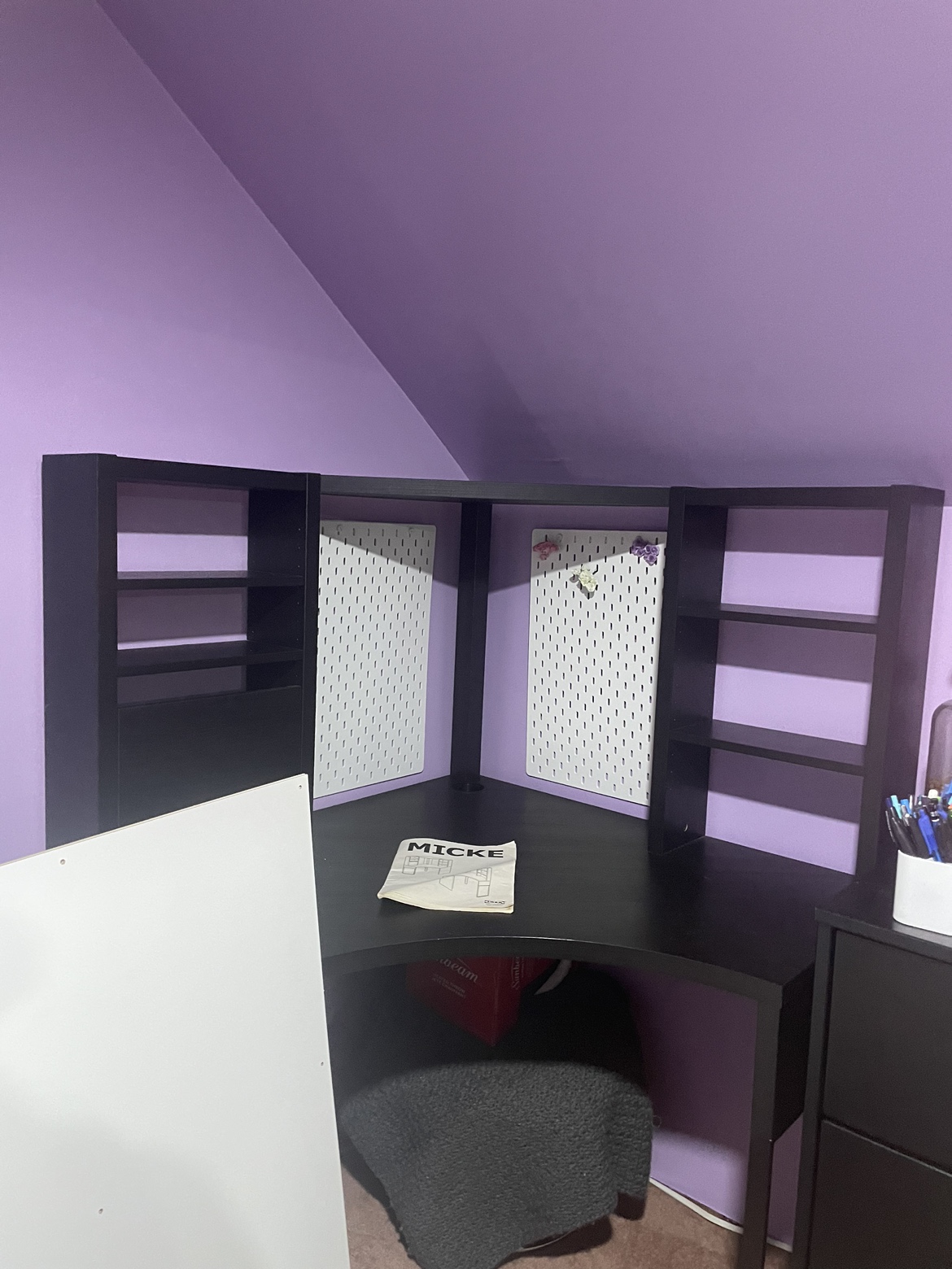 Big corner desk from IKEA. Nothing wrong with it save for 2 small scratches. Just trying to downsize my room as i’m planning to move out soon. Comes dissassembled with the instructions and material. as well as the two white boards for behind the desk. No alan keys or tools come with