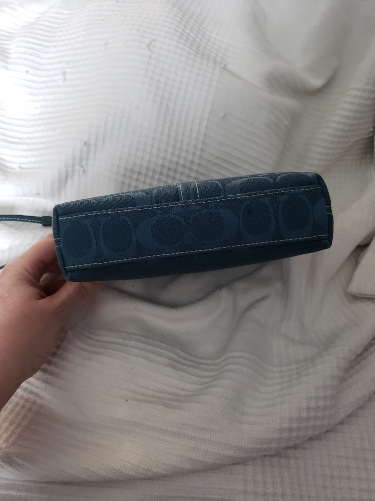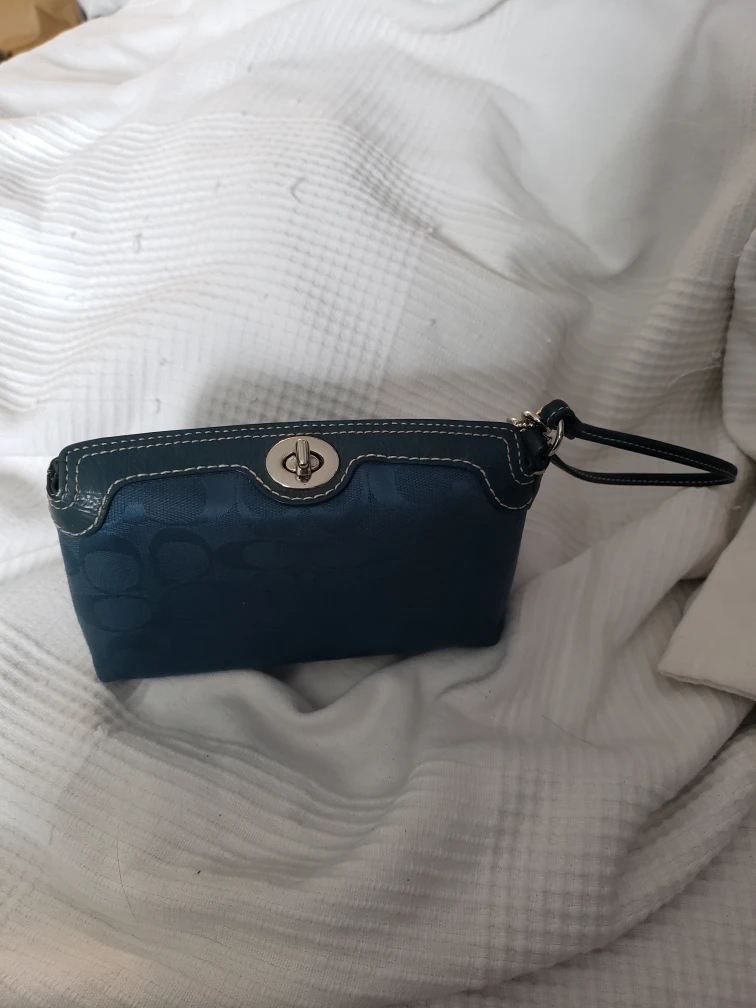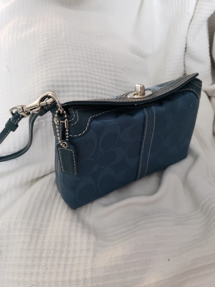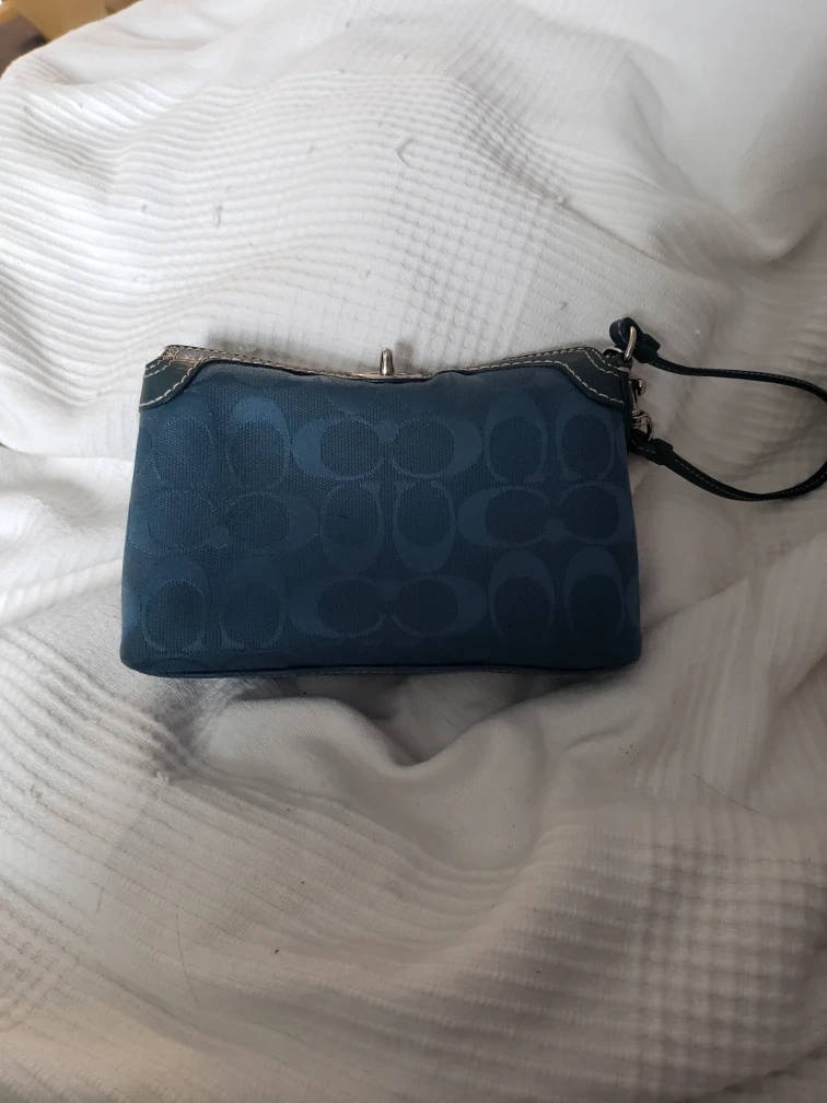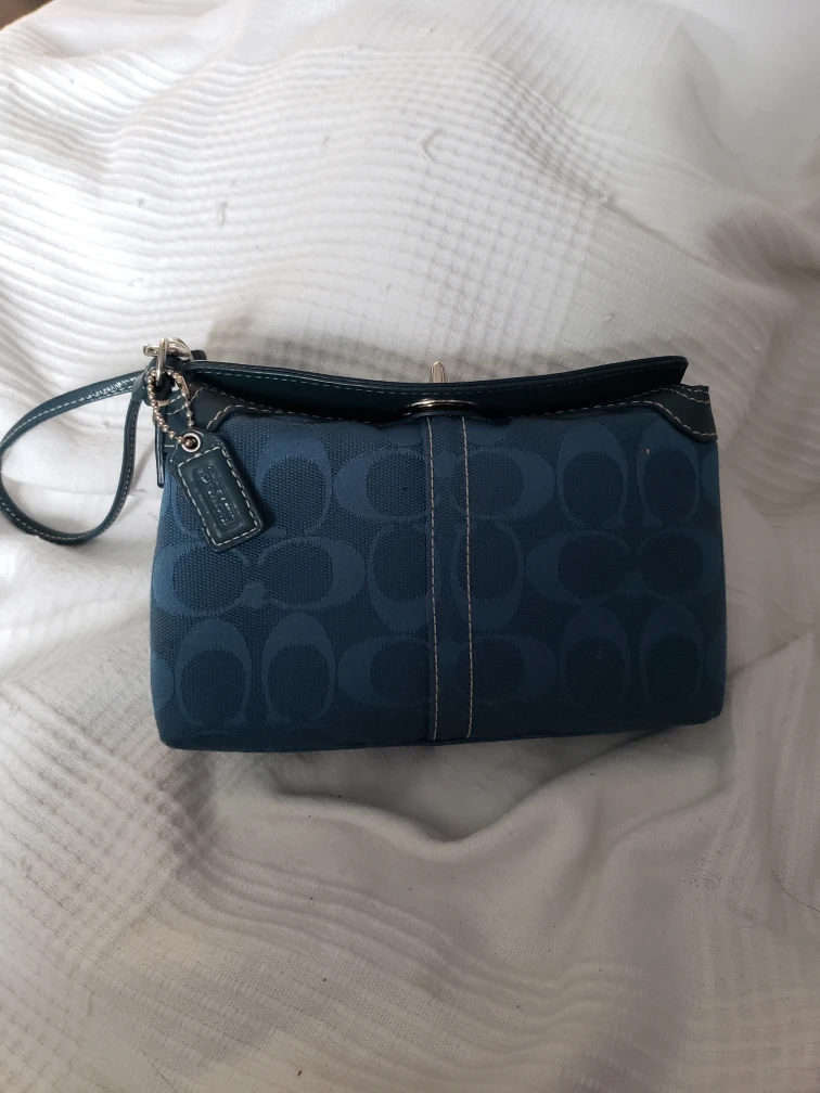 Teal colour Coach clutch with unique clasp. Silver hardware. Pick up in south Ajax.