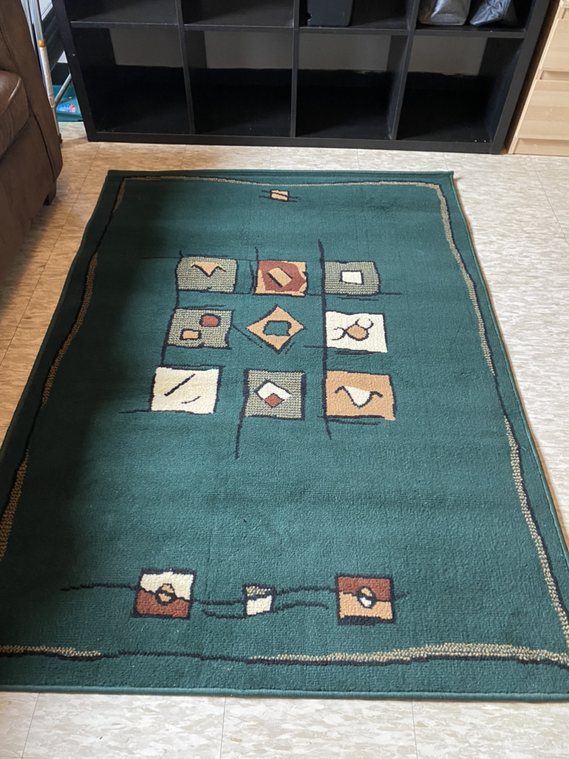 3’x5’ green rug (1.16m x 1.57m) Never used Like new