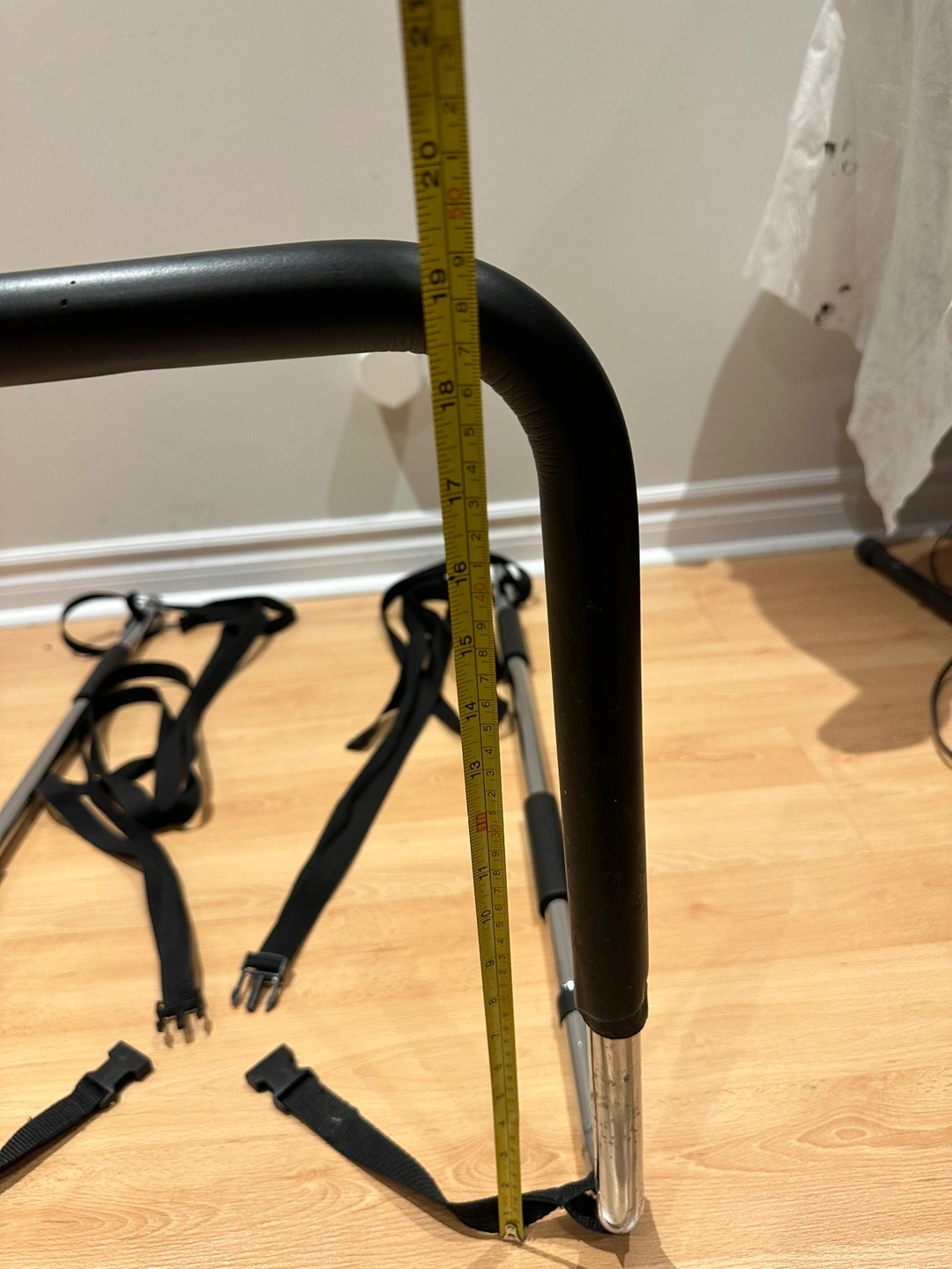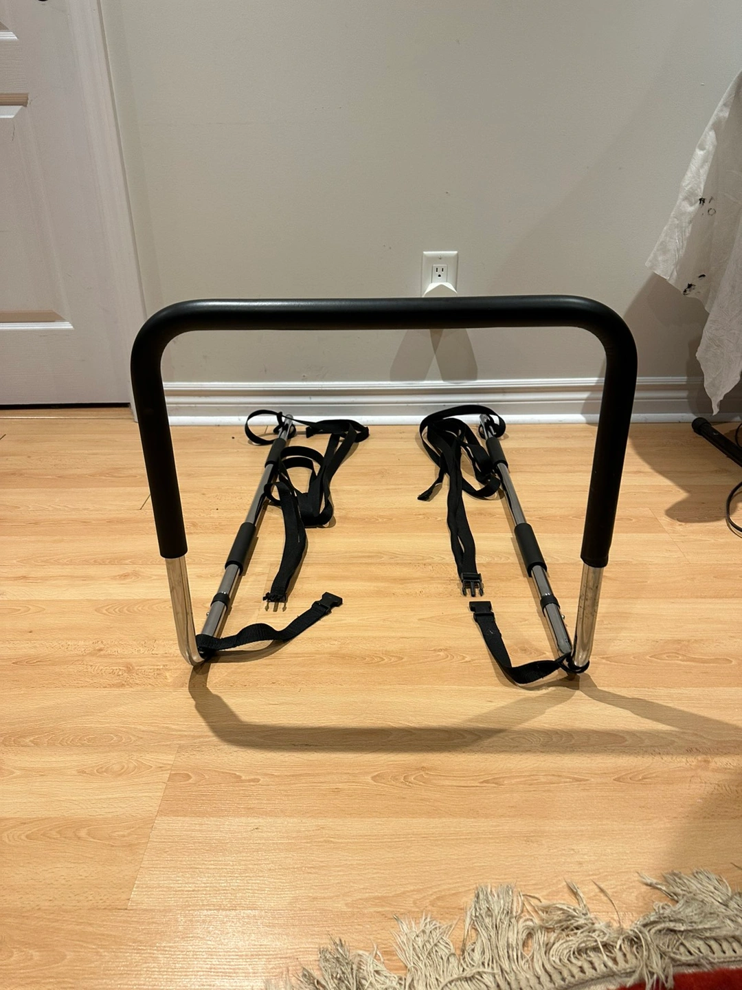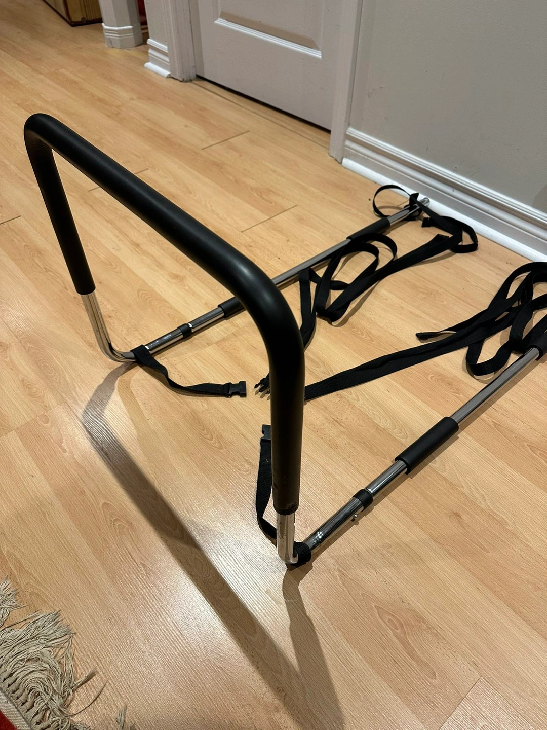 Handle Transfer Rail for Elderly or Seniors Preowned Good Condition Slides underneath mattress and secured with two clip-on straps 20 1/2” W x 36” D x 19 1/2” H Please see photos for all details and measurements
