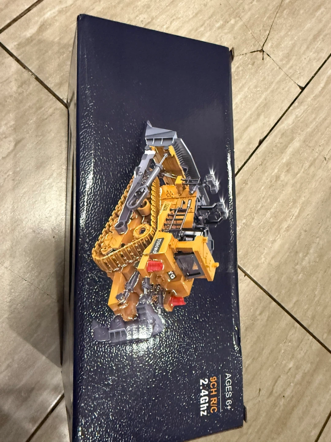 Selling a 9CH R/C remote control excavator with track-type wheels! It's suitable for ages 6+ and features multi-directional remote control. It also has sound and light effects, plus a one-click demo function. Comes in the original box