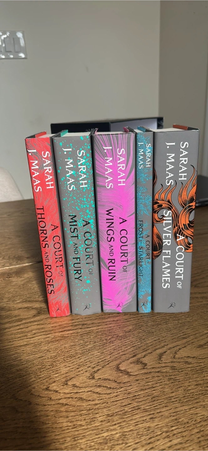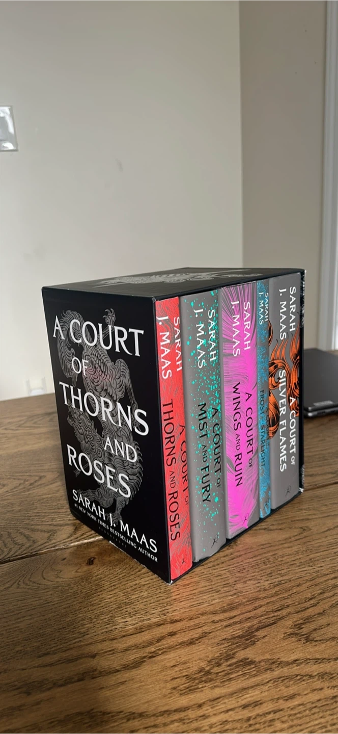 Selling the complete A Court of Thorns and Roses series by Sarah J. Maas! This set includes all five books in the main series, perfect for any fantasy lover looking to dive into a captivating world of adventure and romance