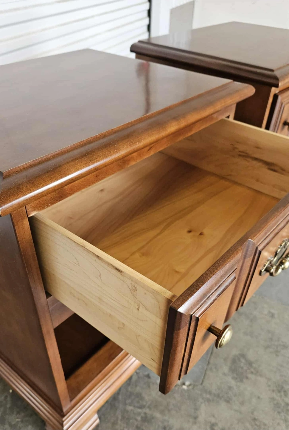 A pair of Vilas Canada solid maple 1 drawer bedside tables - excellent condition- 24h x 22w x 16d