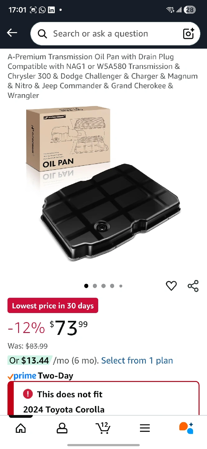 Selling an A-Premium transmission oil pan with a drain plug. It's compatible with NAG1 or W5A580 transmissions, fitting Chrysler 300, Dodge Challenger, Charger, Magnum, Nitro, Jeep Commander, Grand Cherokee, and Wrangler models. It provides a professional solution to oil leaks and transmission overheating. The pan is firm, heatproof, tight, and cooling