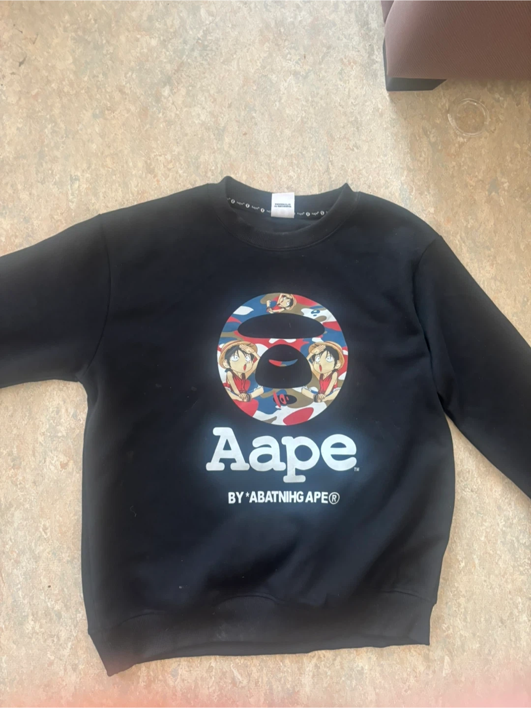 Selling a black Aape by A Bathing Ape crewneck sweater. It features a cool graphic on the front. Size is Large! Not sure if it is real so