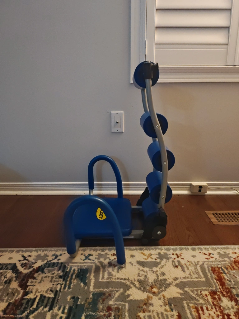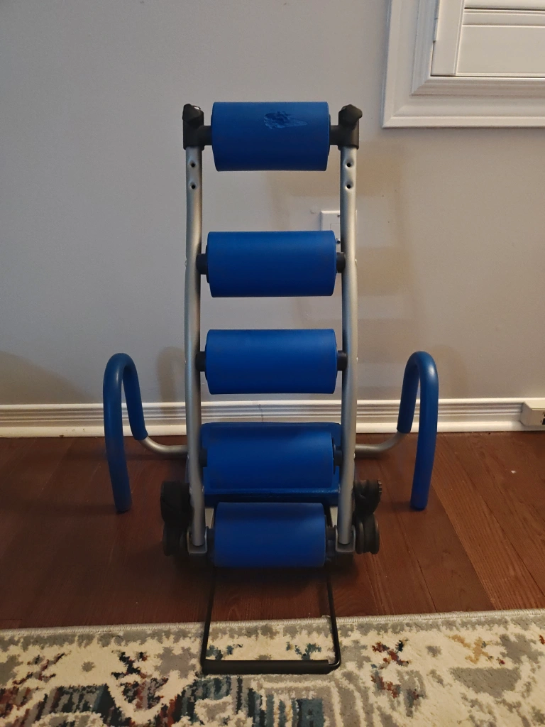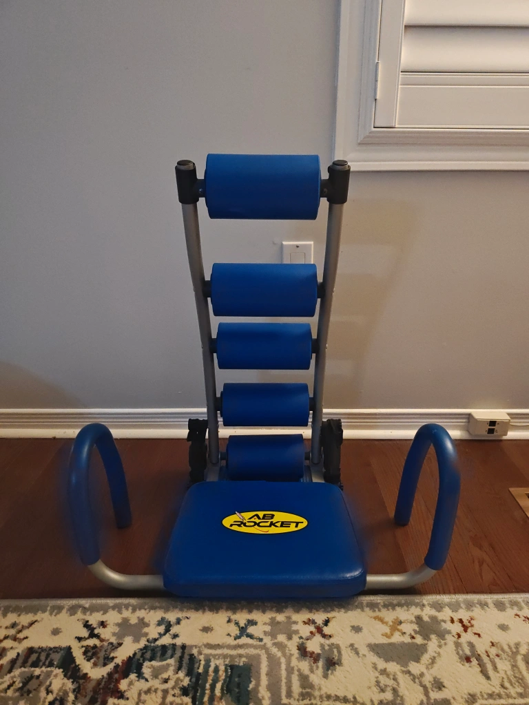 Slightly used Ab excersize chair. Has a little folding tab on the bottom to prevent chair from falling back. Has a small ripped part on the very top roll. Willing to negotiate if price is too high.
