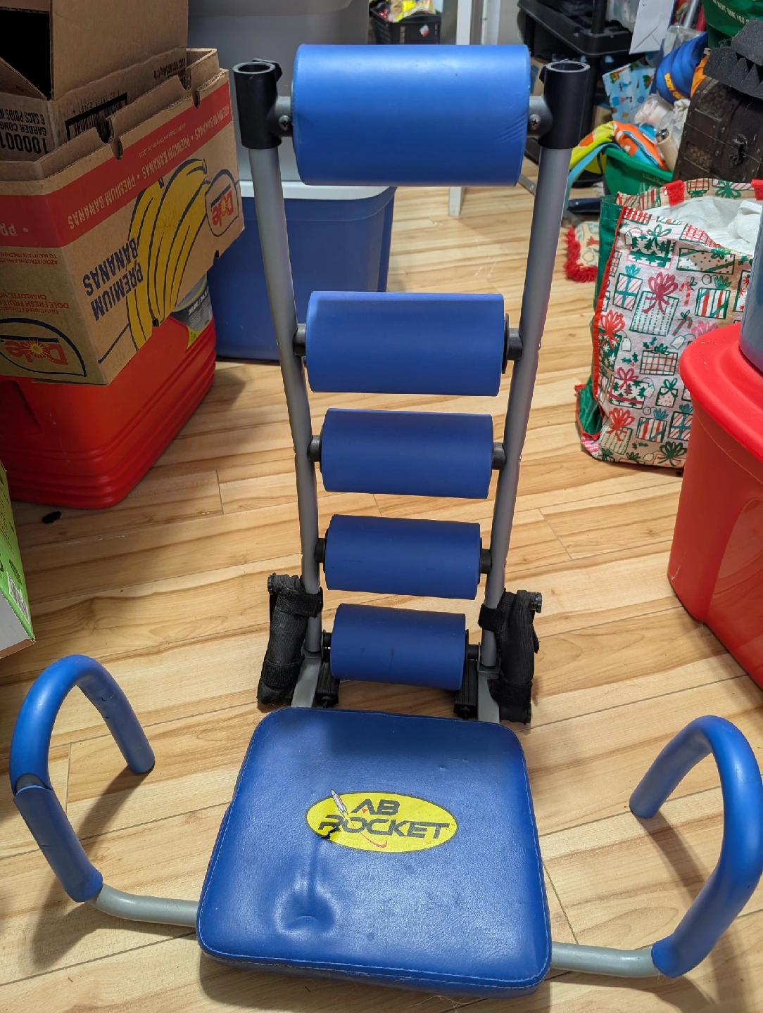 Get ready to work those abs with this AB Rocket abdominal trainer! It's in good condition and ready for a new home gym. The blue design is sleek and functional, perfect for targeting your core muscles. Great for anyone looking to add a little extra to their workout routine