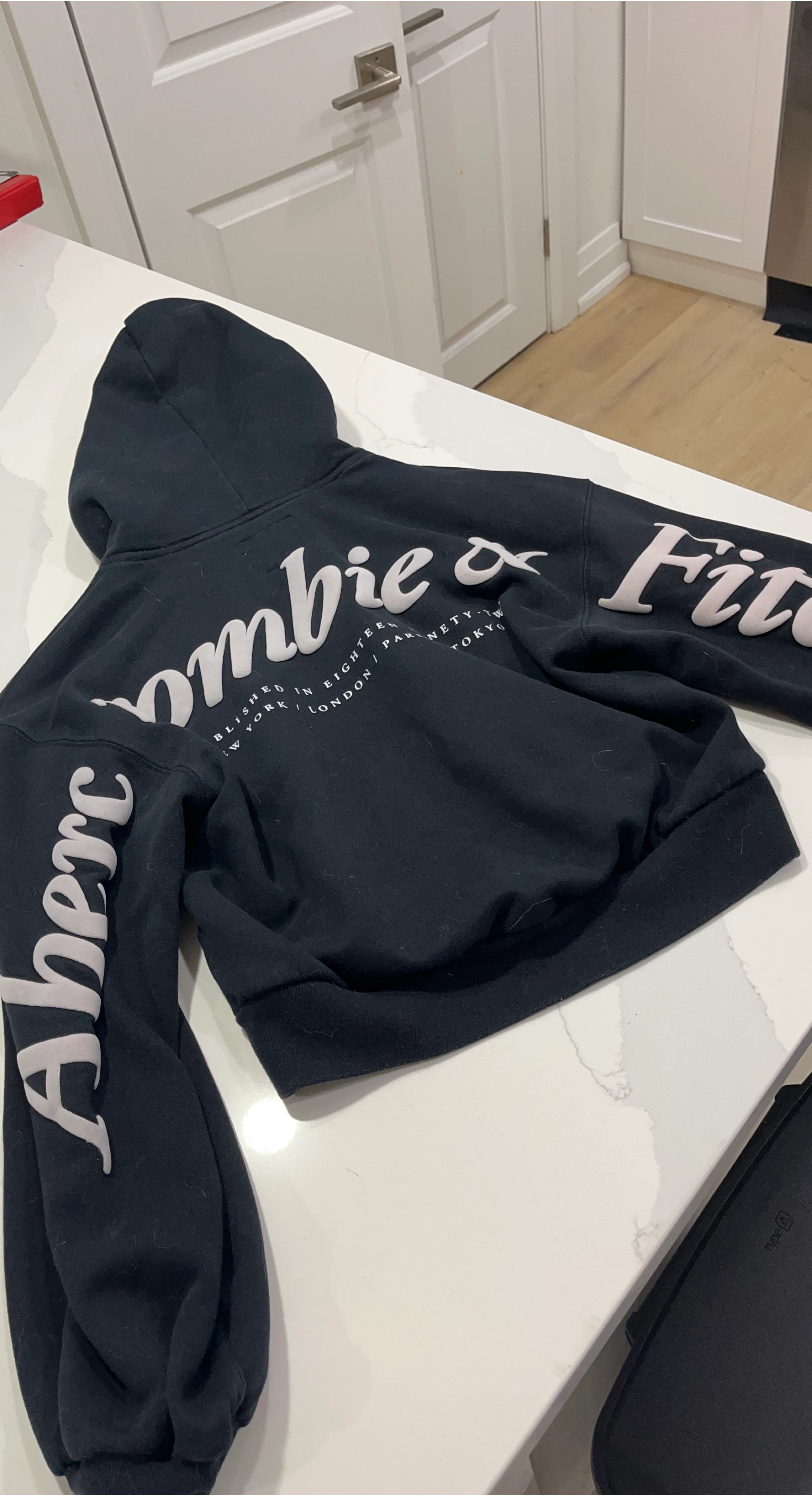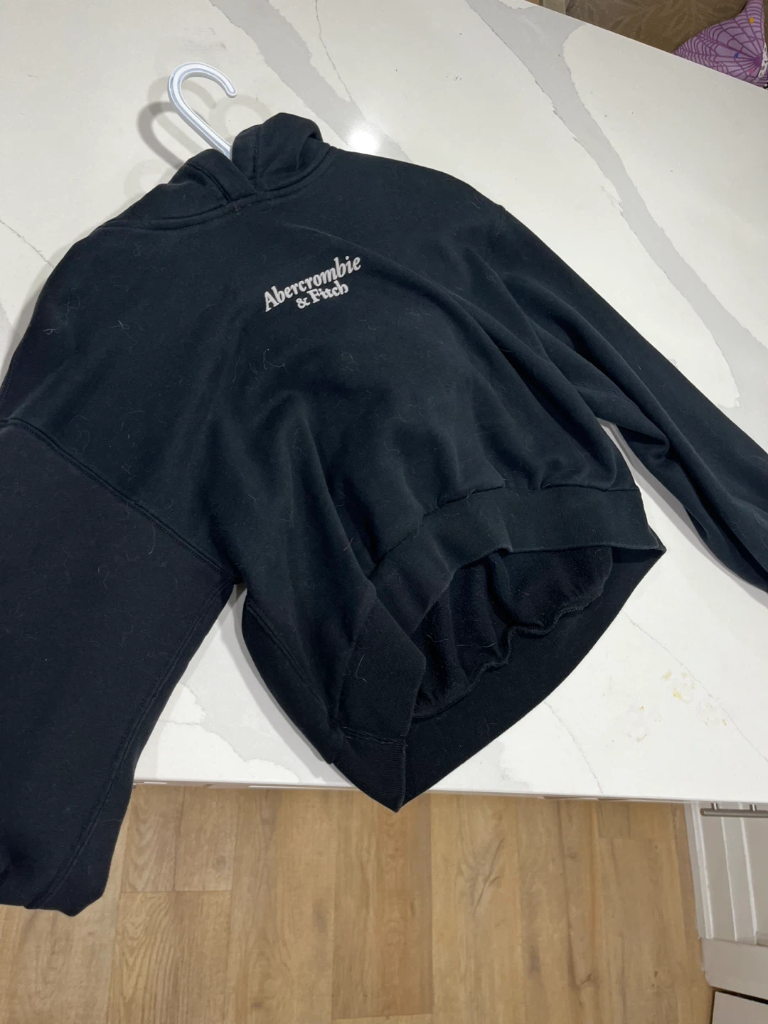 Selling a comfy black hoodie from Abercrombie & Fitch! It's in great condition and perfect for those cooler days. The hoodie features the brand name on the sleeves and back. It's a stylish and casual piece to add to your wardrobe