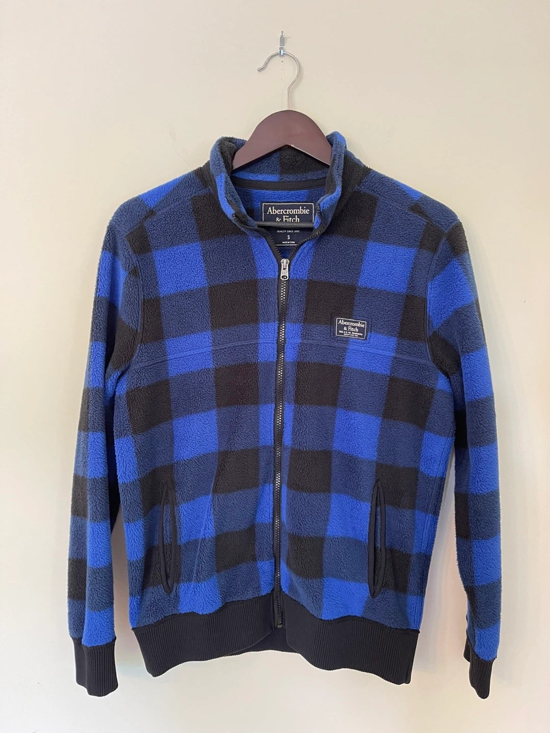 Cozy Abercrombie & Fitch full zip fleece jacket in a blue and black buffalo plaid pattern. Men’s size small Excellent condition, worn once or twice $20.00 cash only please Smoke free pet free home Pick up at Tim Horton’s/Shell Station 780 South Sheridan Way Mississauga L5H1Z6