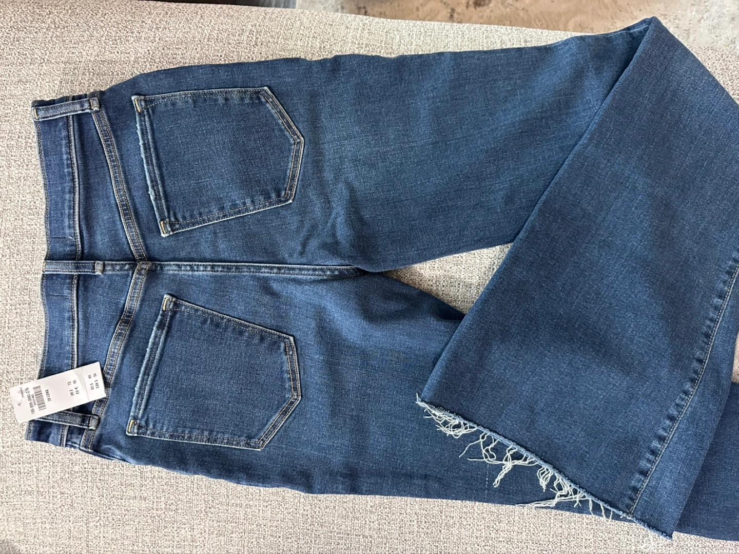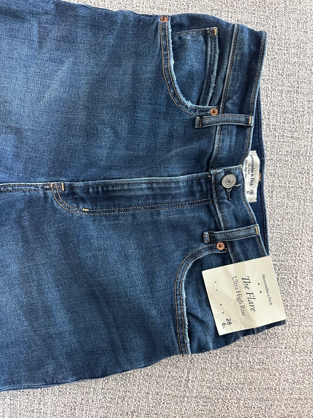 Brand new, with tags on. Abercrombie & Fitch The Flare Ultra High-Rise jeans. Size 28 (6) Long. Dark wash denim. Raw hem. Very cozy and comfy stretchable material. Original price is 94$ cad