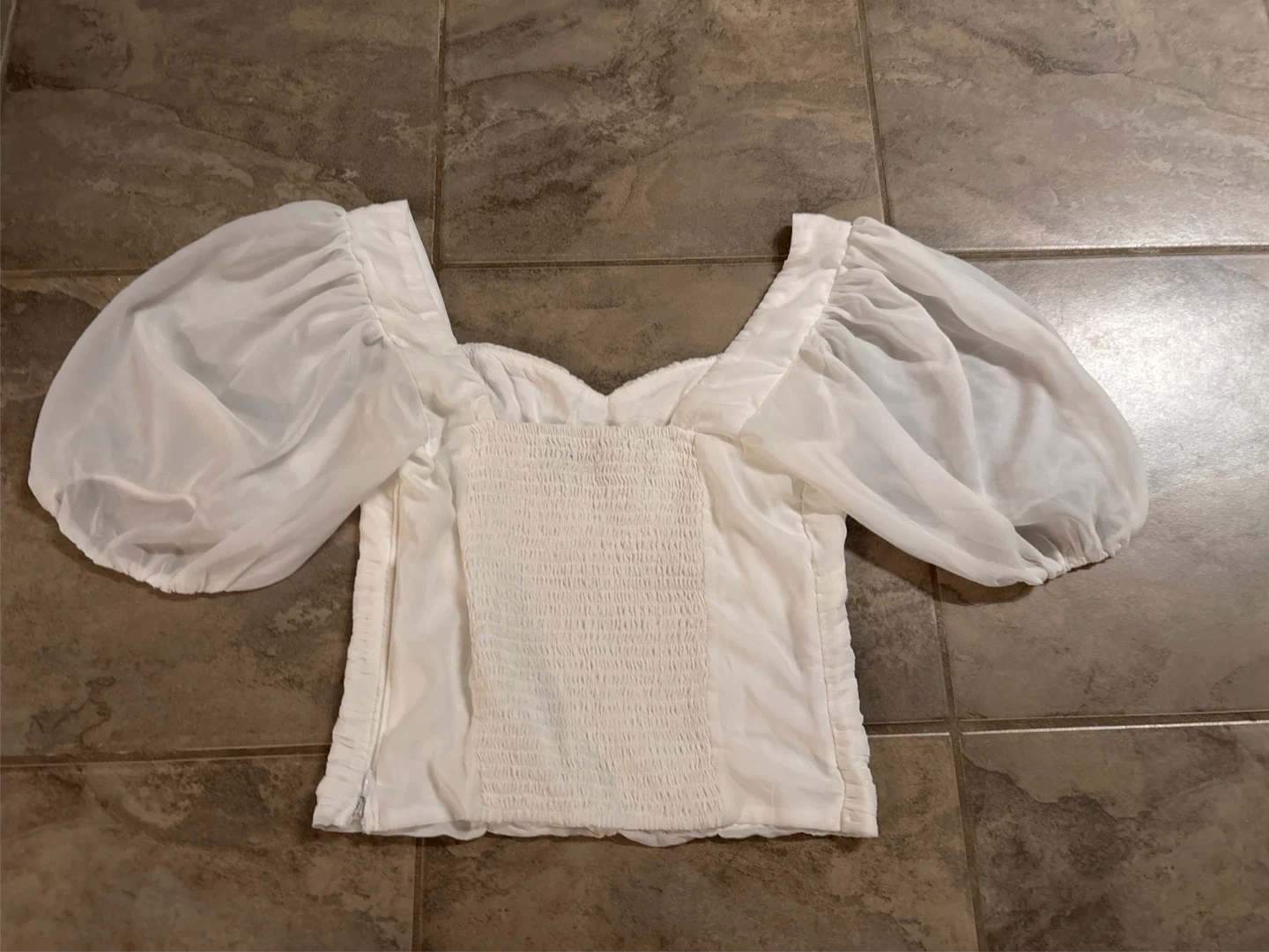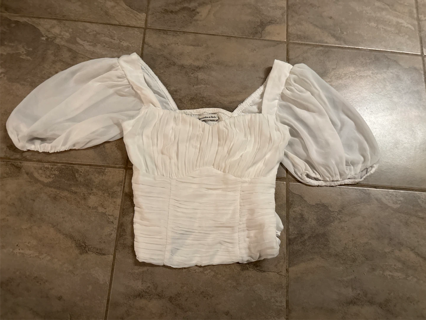 Selling a cute white puff sleeve top from Abercrombie & Fitch! It's in great condition and perfect for adding a touch of elegance to any outfit. The material is lightweight and comfortable, making it ideal for warmer weather. It's a size small.