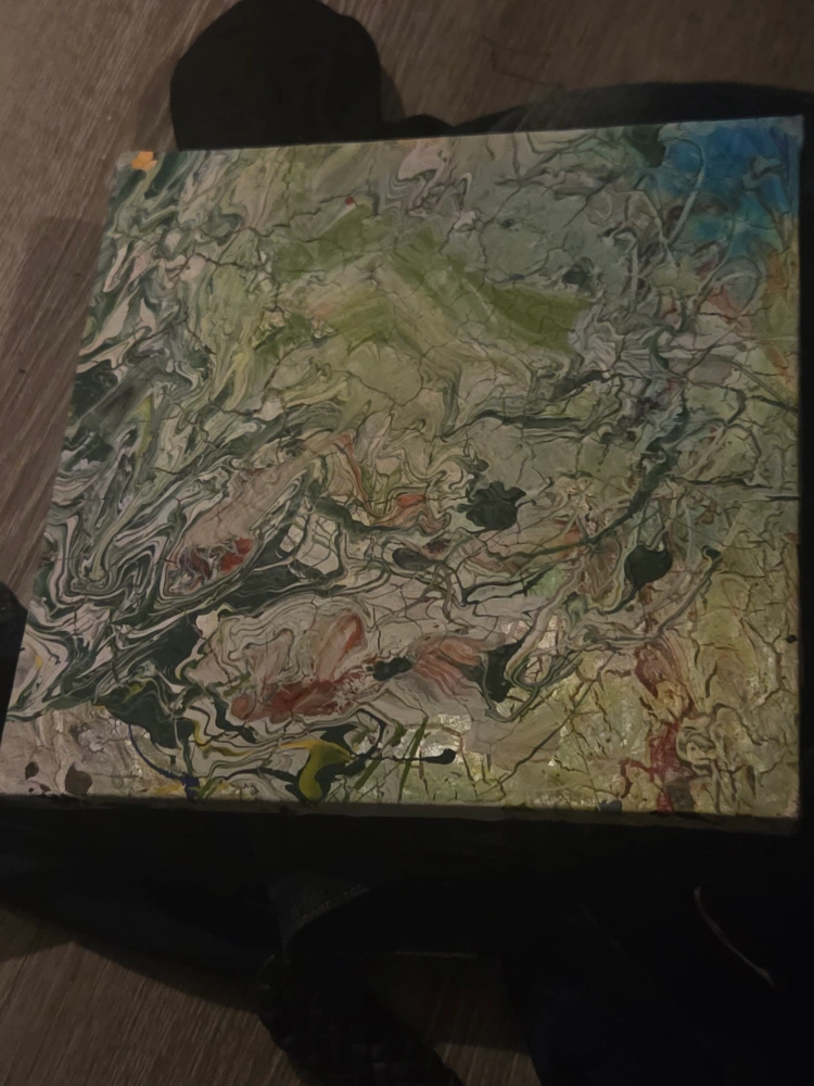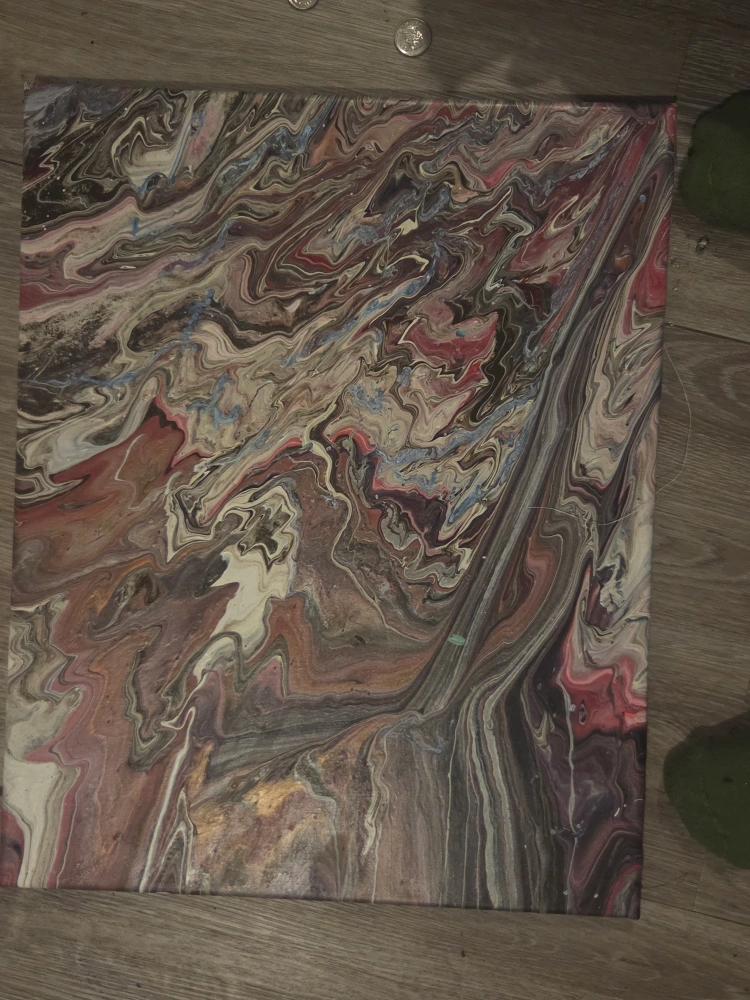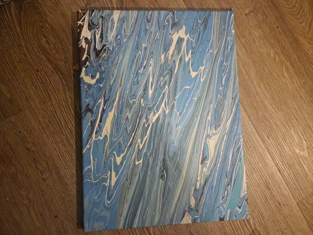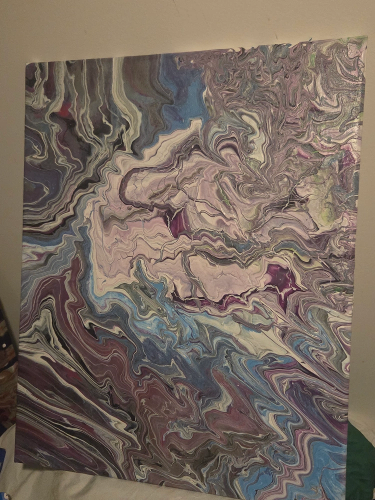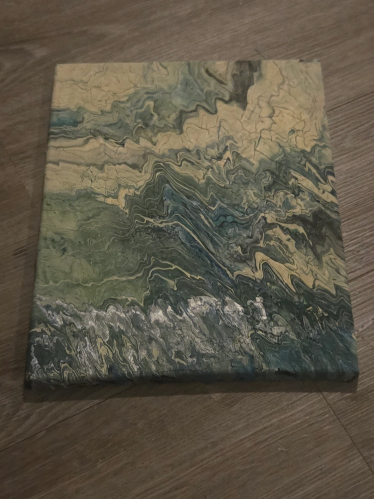 Selling a unique abstract art painting. It features a blend of blue, white, and black colours, creating a mesmerizing marbled effect. Perfect for adding a touch of modern artistry to any room