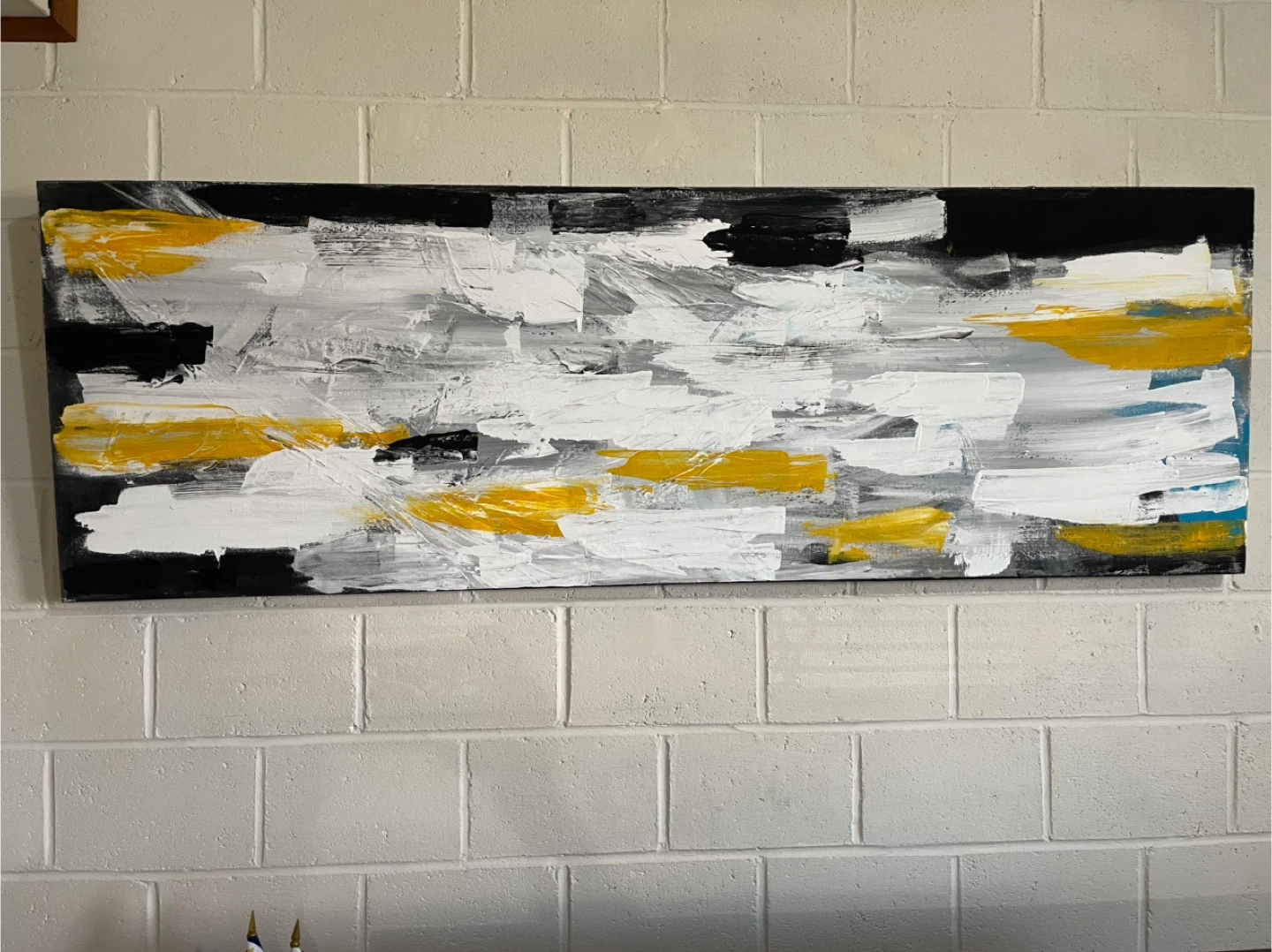 My Personal Han made Acrylic Canvas painting This is an abstract art painting with black, white, and yellow colours. It would be a great addition to any room!