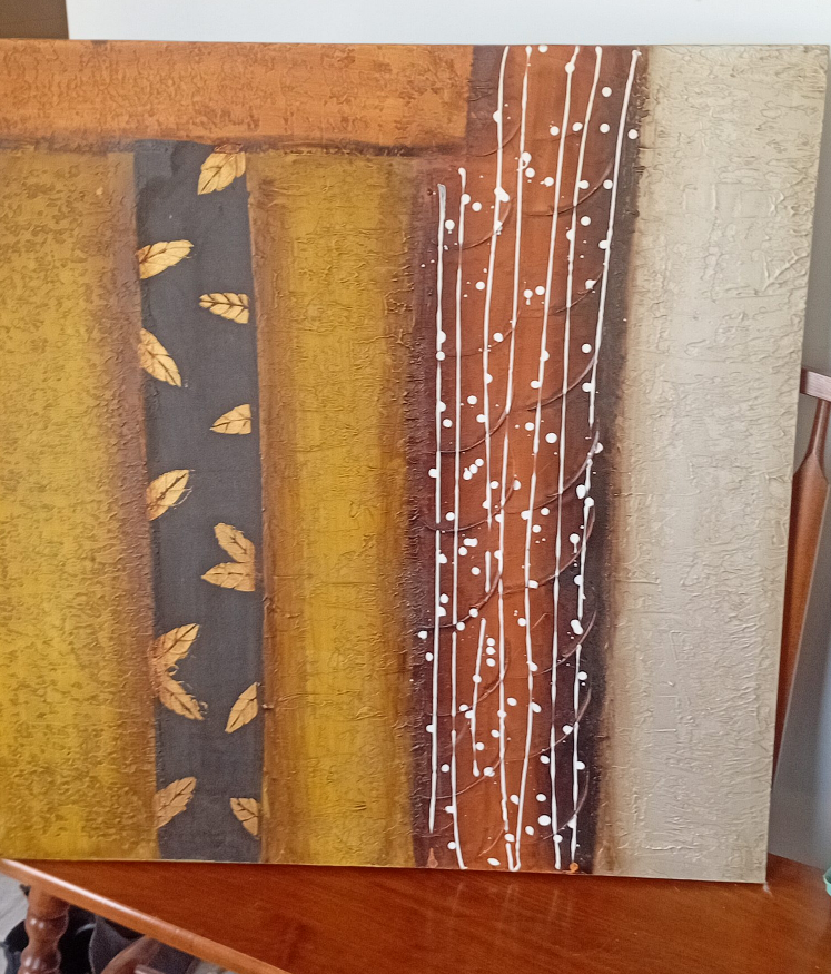 Looking to add a unique piece to your home decor? This abstract canvas art is a great way to bring warmth and visual interest to any room. The blend of earthy tones and textures makes it a versatile piece that can complement various interior styles. It's in great condition and ready to hang!