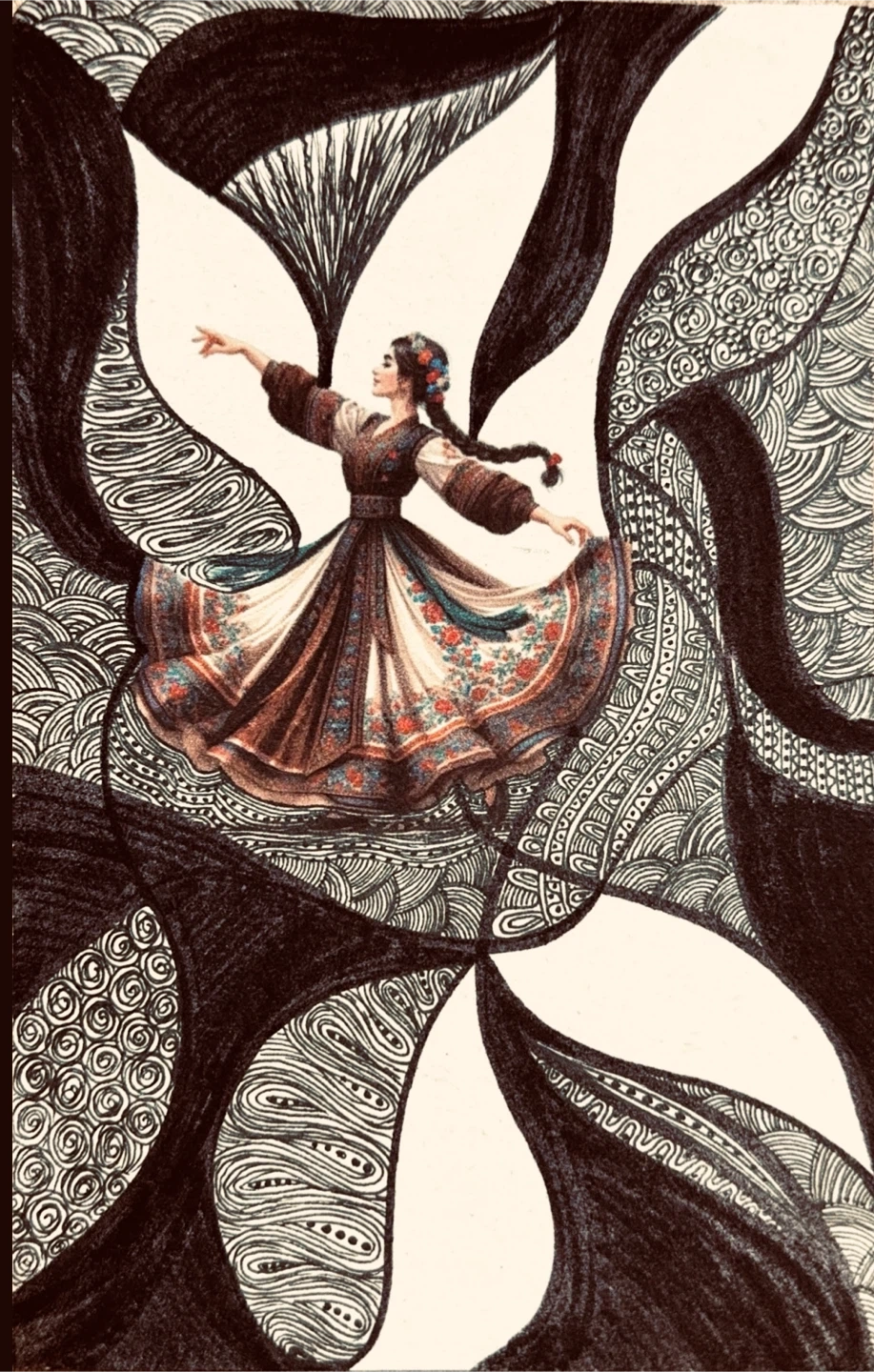 persian art, dance art print, zentangle illustration, abstract feminine art, line drawing, boho wall art, oriental art, cultural art print, meditative art, traditional dress art