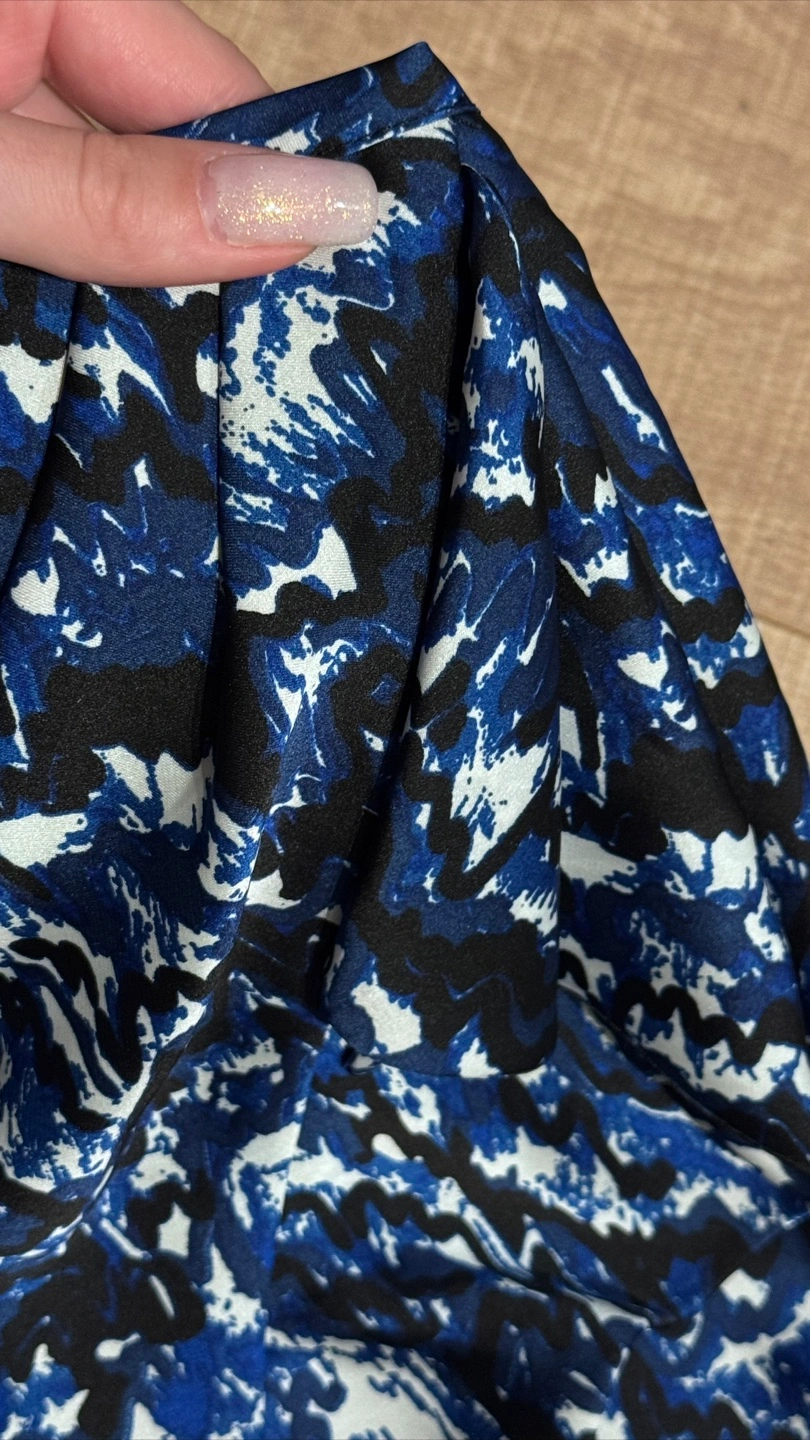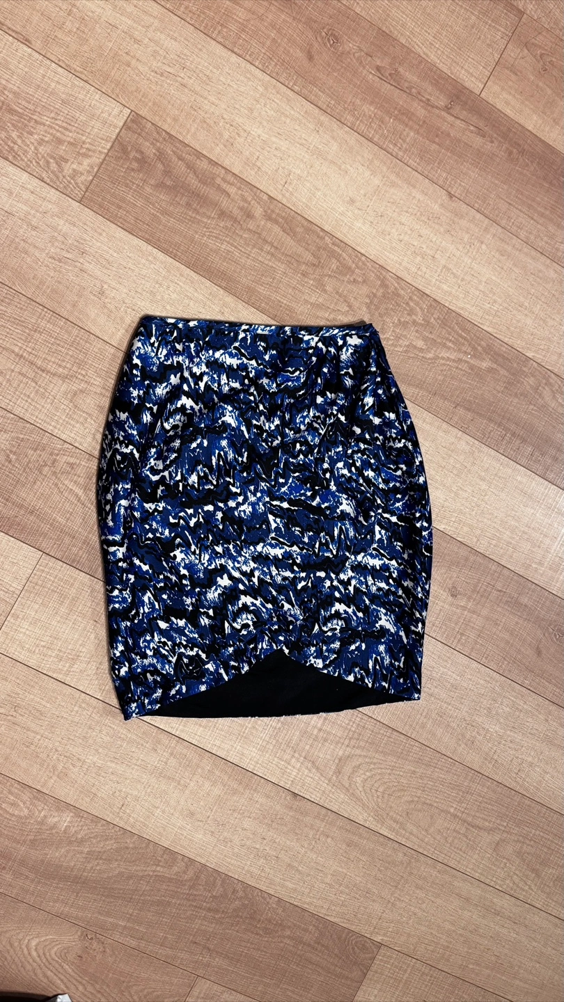 A very chic mini skirt. Features an all-over abstract print. The skirt has a black under layer. Imagine how fantastic this skirt will look with a simple black t-shirt. Xs but also perfect for S size