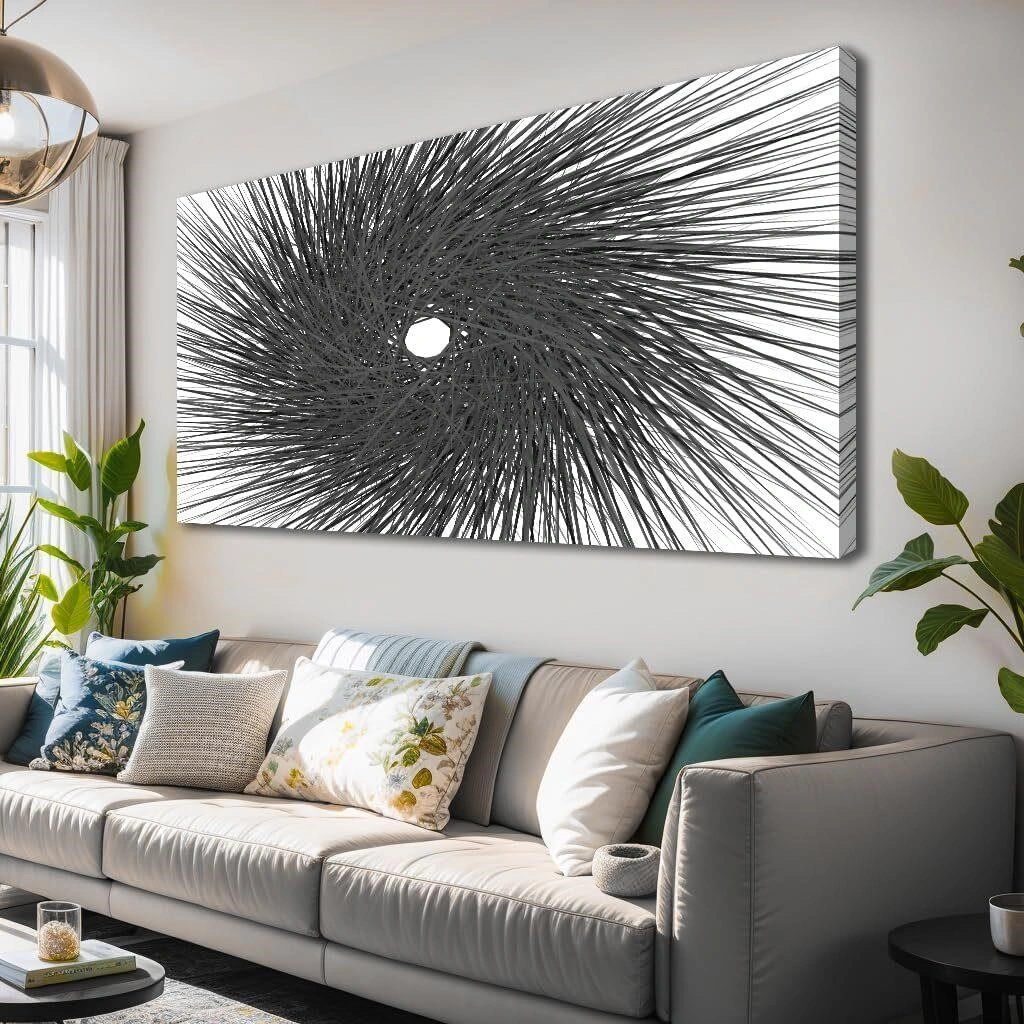 Looking to add a modern touch to your living space? This abstract black and white wall art could be the perfect addition! It's sure to make a statement in any room