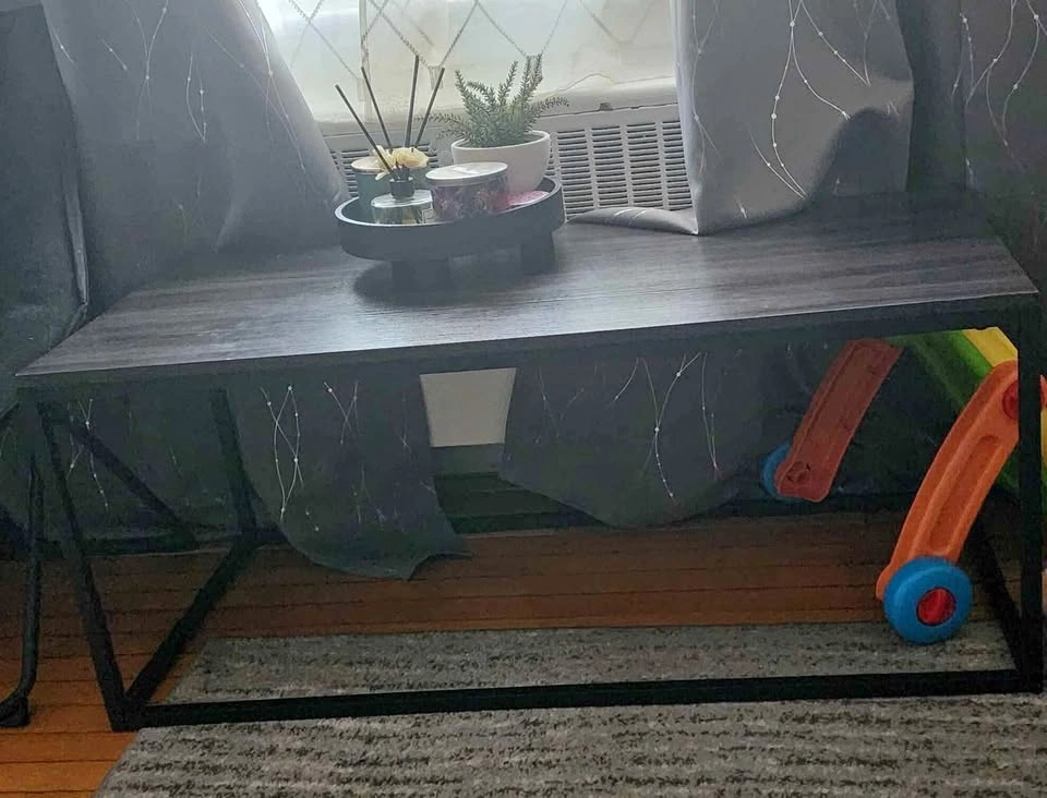 Other Dimensions Overall - 19" H X 45" W 21" D Overall Product Weight - 28 lb. TableTop Thickness Clearance - Floor to Bottom - 17" H Base Material - Steel Decal/Laminated design - Wood Selling because I am moving. Serious buyers only please.