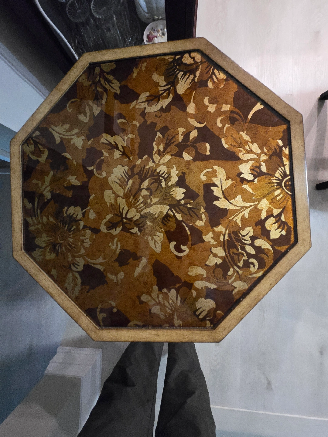 A pair of beautiful accent tables with a unique floral design on top, in great condition and would add a touch of elegance to any room. Perfect for displaying decorative items or as a side tables next to your favorite chair.