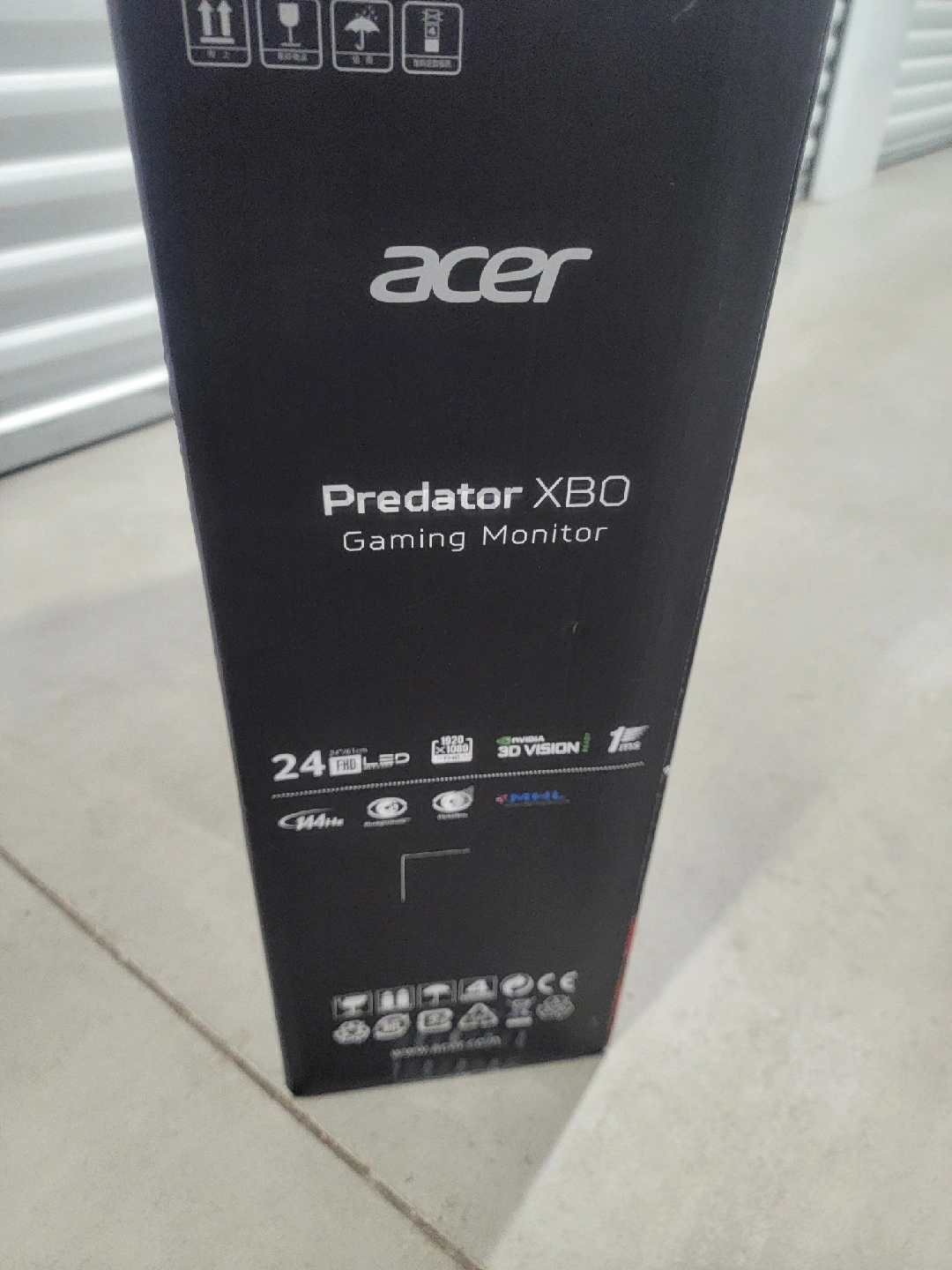 Gently used Acer Predator XB0 Gaming Monitor. It comes with the box and all components are included. It's a 24 inch LED monitor with NVIDIA 3D VISION. Price is firm.