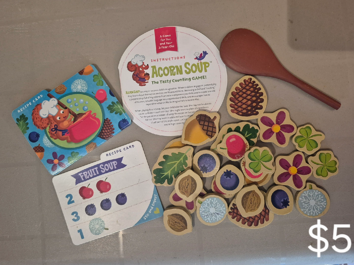 The Acorn Soup counting game is a fun way to engage your preschool or kindergarten child in pretend play! It helps them learn about the world around them and encourages counting, imagination and organizational skills. Stir and enjoy!
