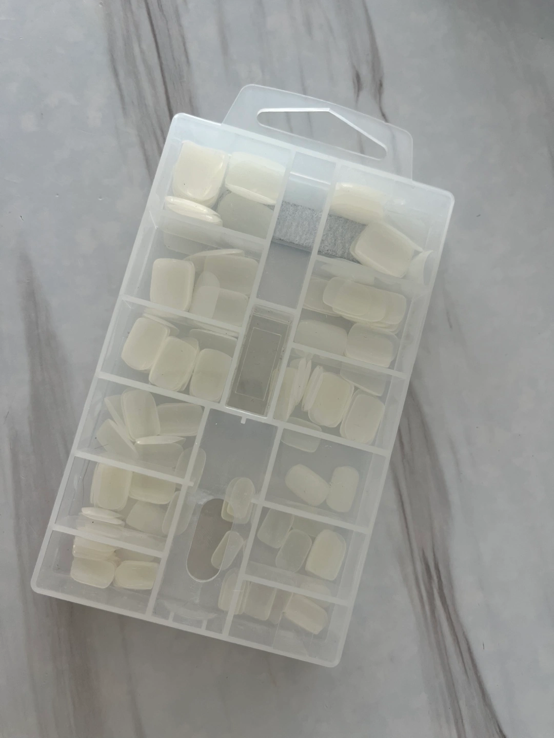Selling a set of acrylic nail tips. They come in a divided case for easy organization. Great for DIY manicures at home!