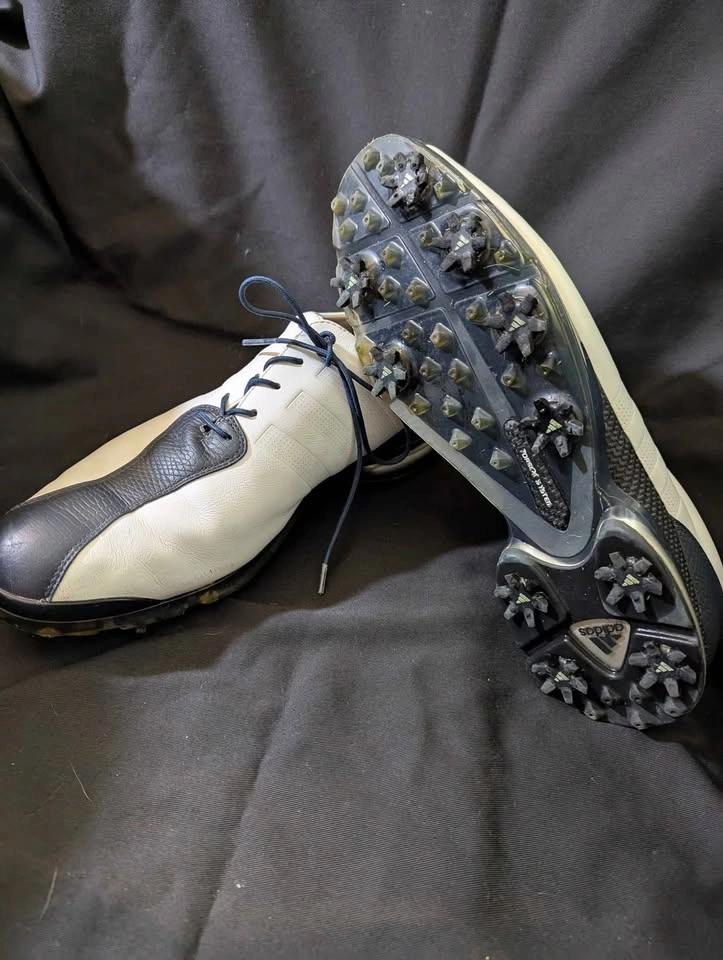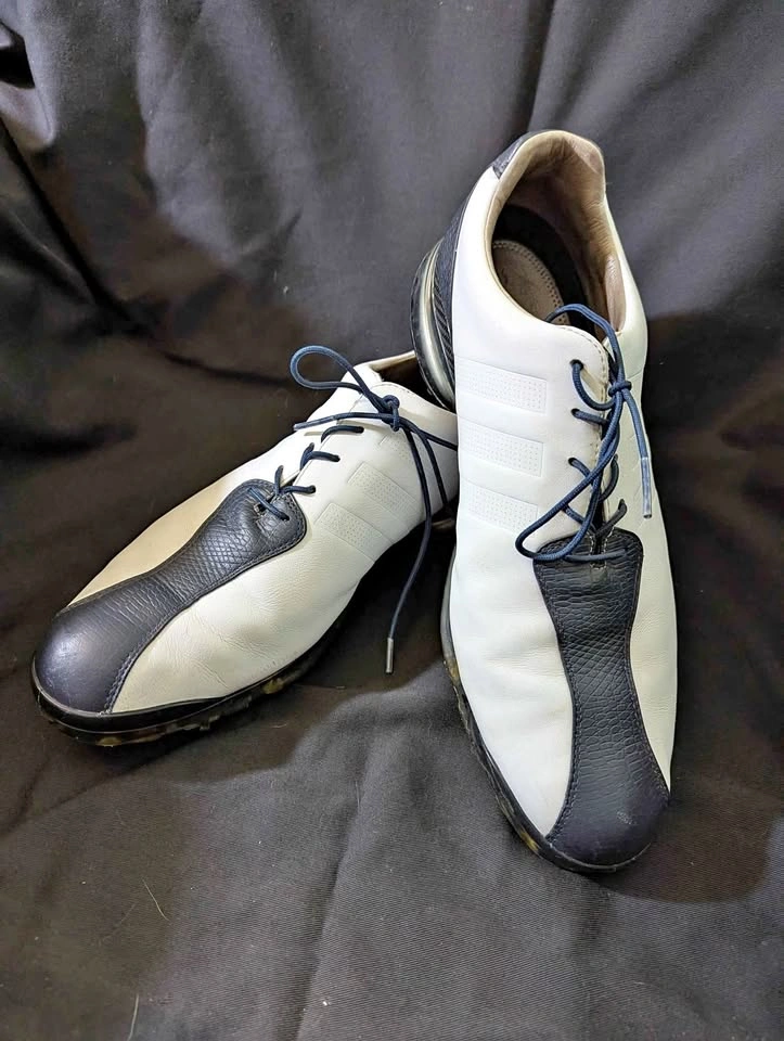 -Navy and white leather golf shoes -men's size 12 -classic style -softspikes/spikeless