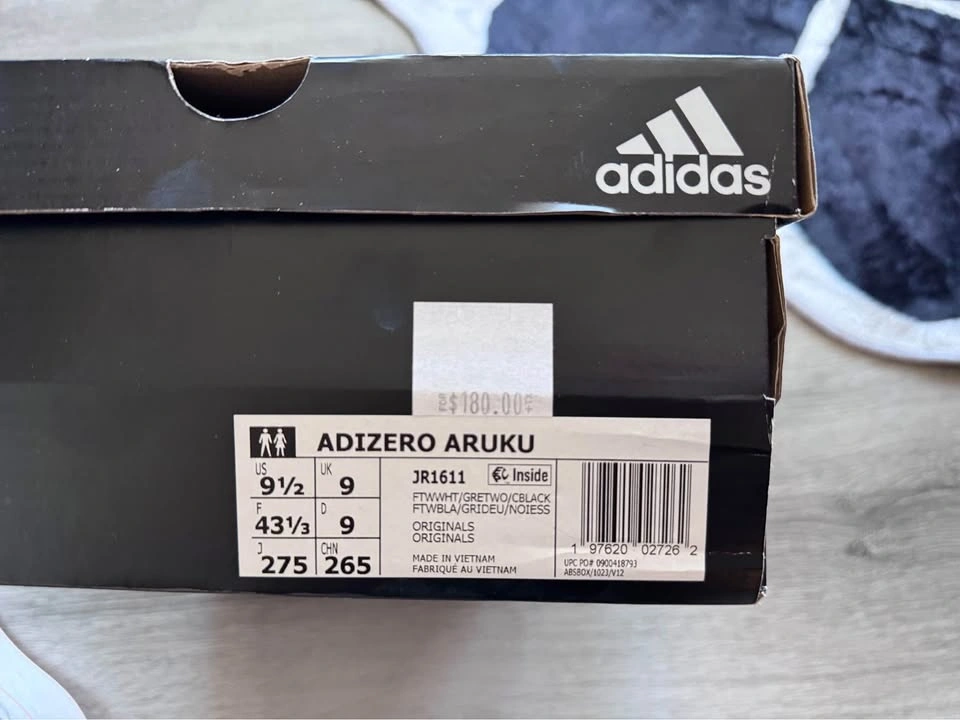 Brand : Adidas Model : AdiZero Aruku Size : US9.5 / UK 9 / Eur 43.5 Condition : 9.5/10 ( Worn once because too small ) Color : White / Red / Grey Cash and Pick up Only