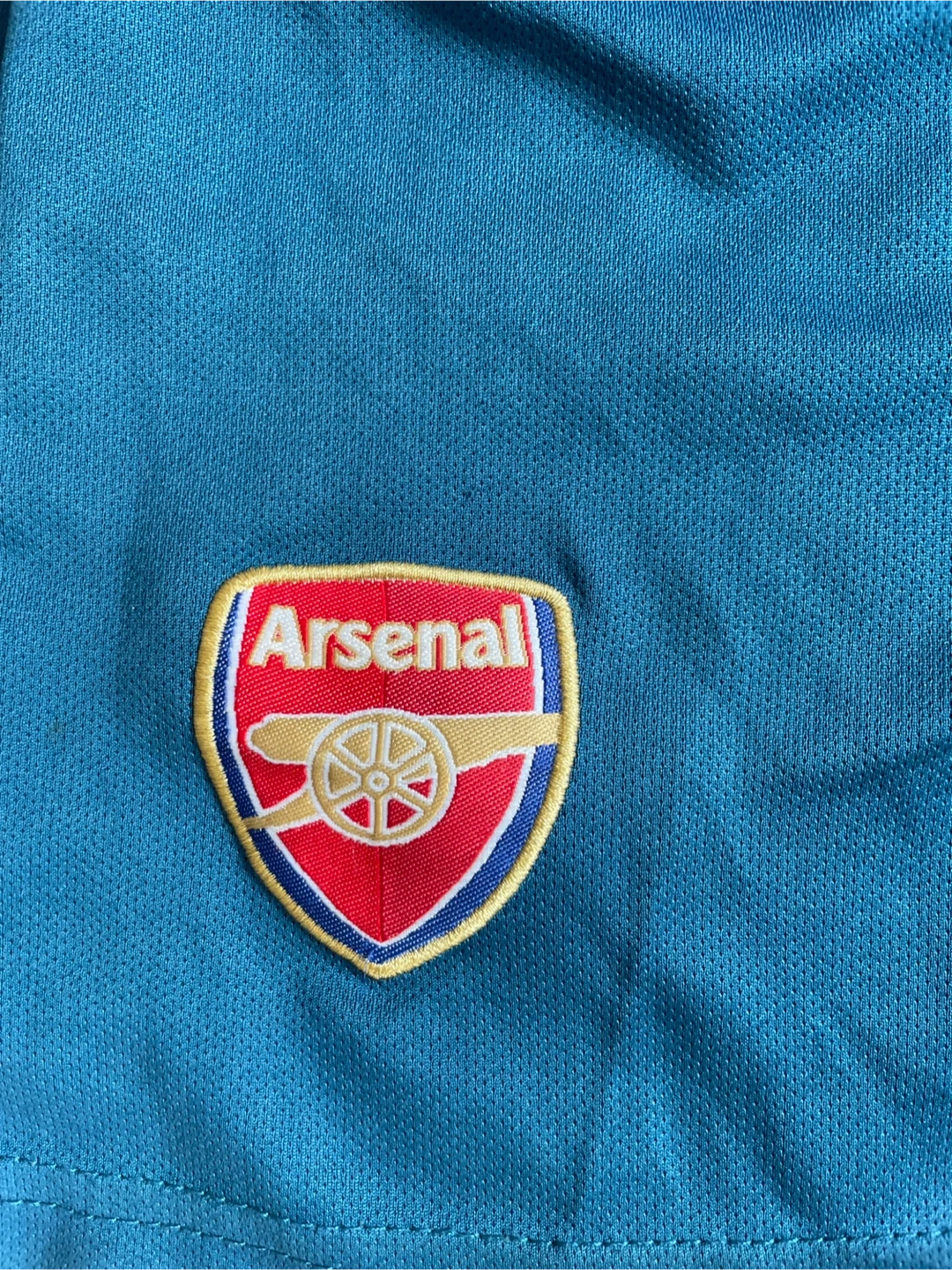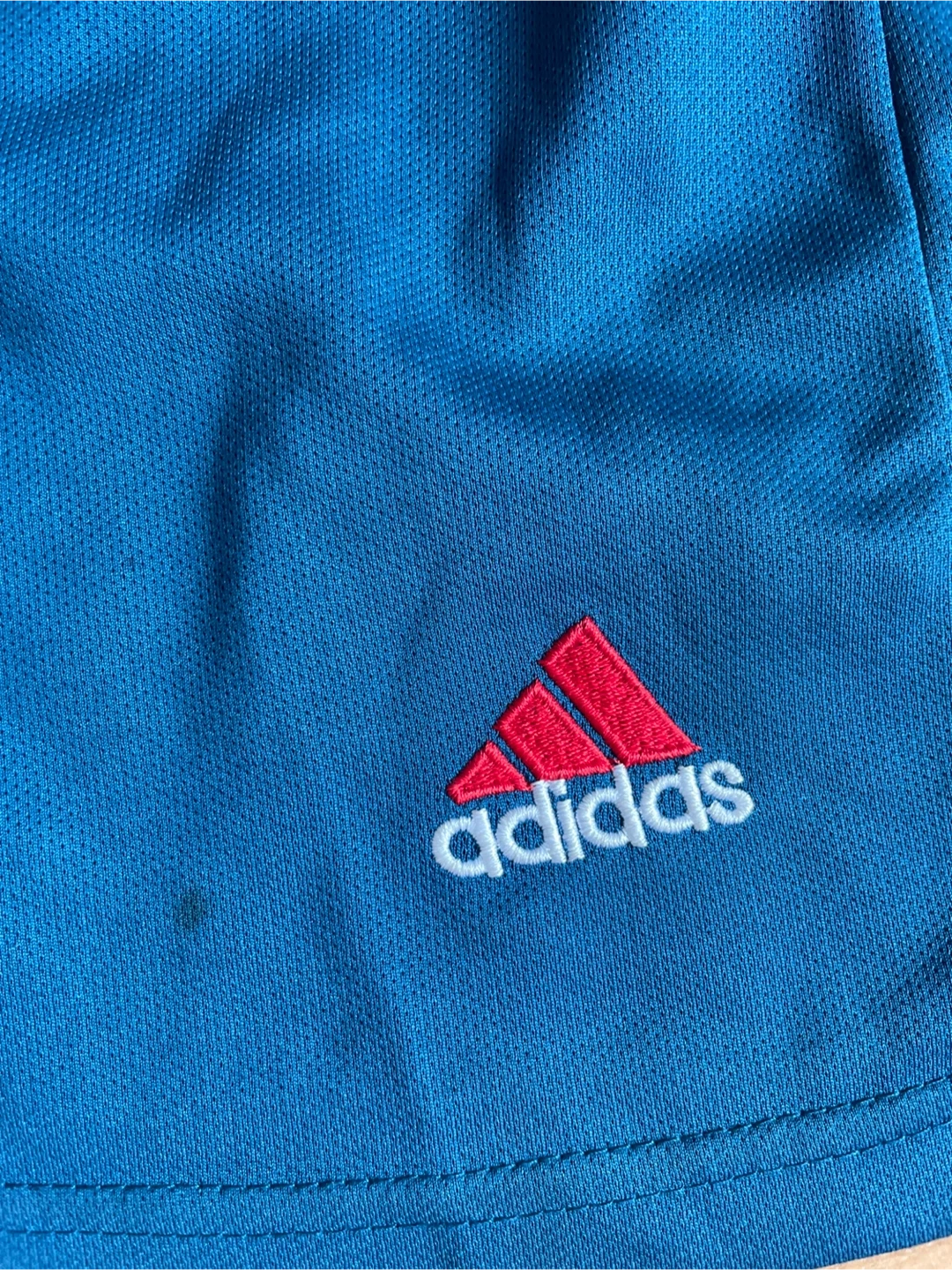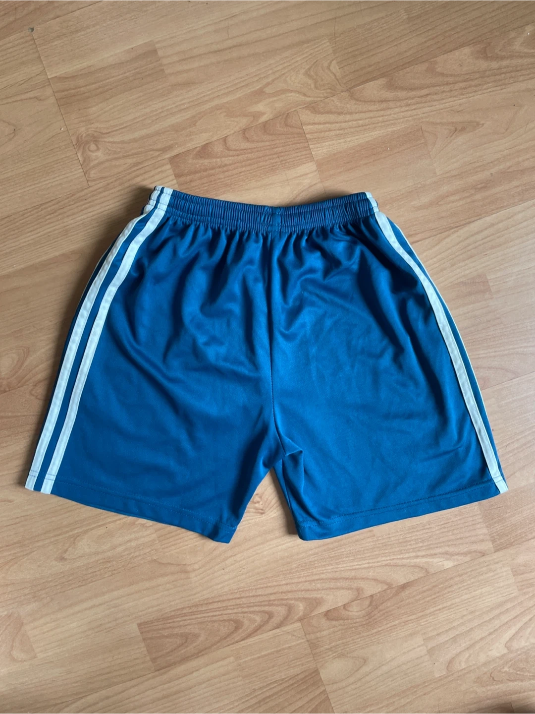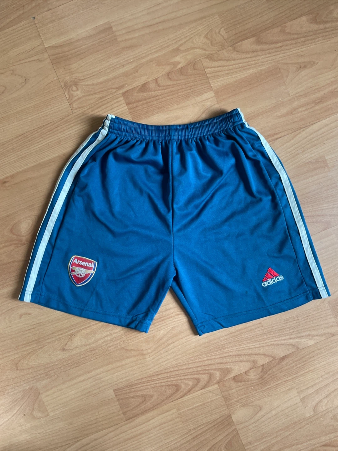 Adidas Arsenal training shorts, blue with white stripes and feature the Arsenal logo. There's a small dark spot near the Adidas logo, see photos for more details. Size is very small. Probably size 28 or smaller? Also have two other listings for athletic shorts. Open to offers for all three pairs. Trying to declutter. Located near College Park.