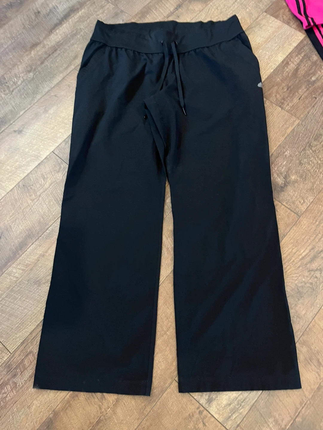 Selling a pair of Adidas black pants in excellent condition! The size is XL. They are perfect for workouts or just lounging around. Feel free to message me with any questions!